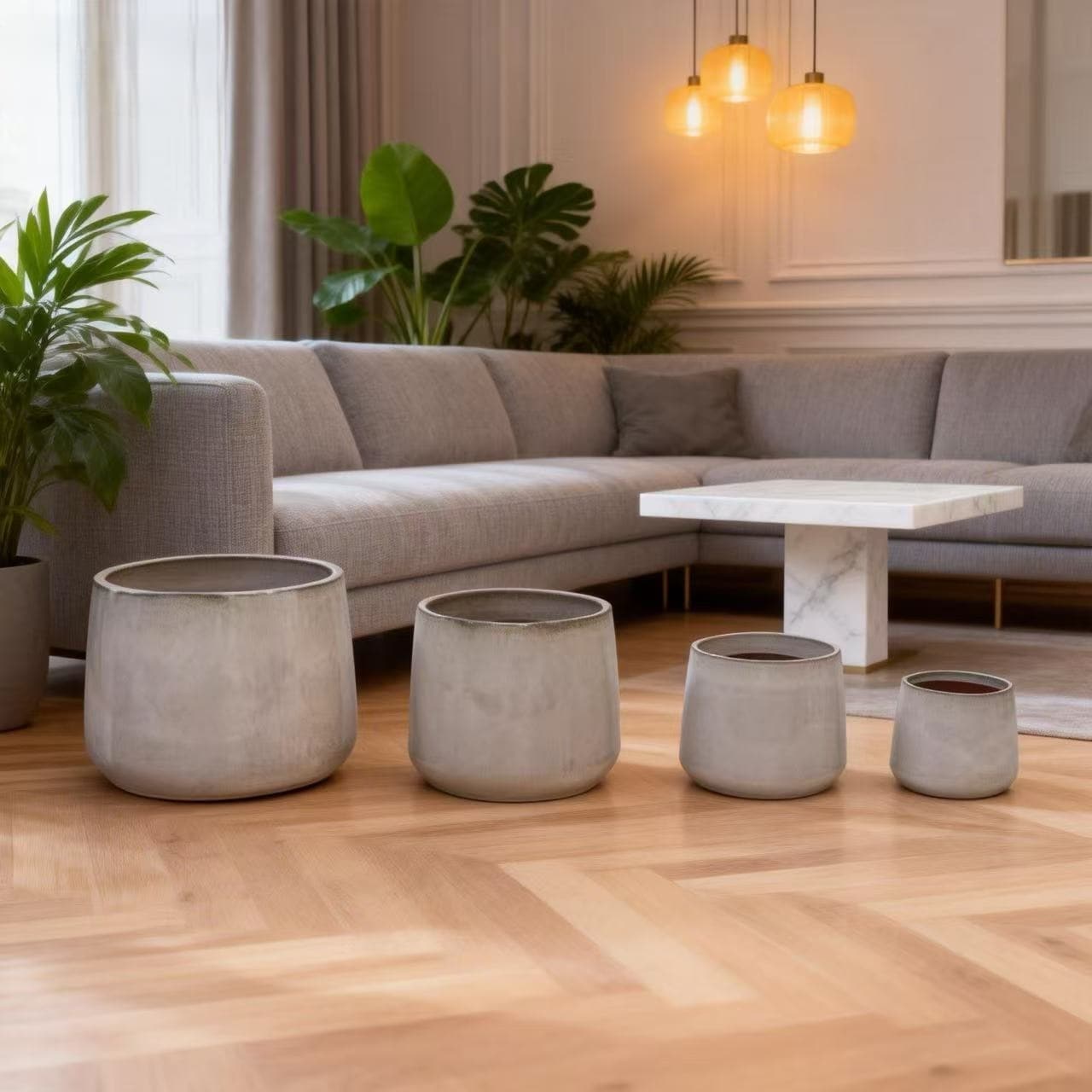 Light Concrete Planter, with Drainage Hole Mid-Century Modern Urn, Floral Statue Design, Large Garden Pot