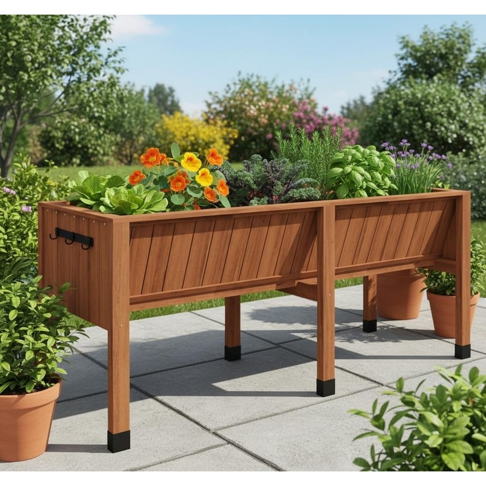 13.7In Depth Elevated Wooden Raised Garden Bed
