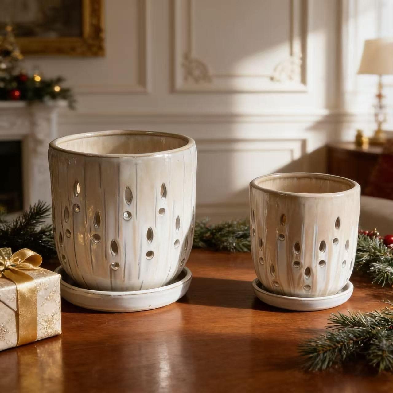 Handmade Planter, Ventilated Design, Saucers for Succulents and Herbs