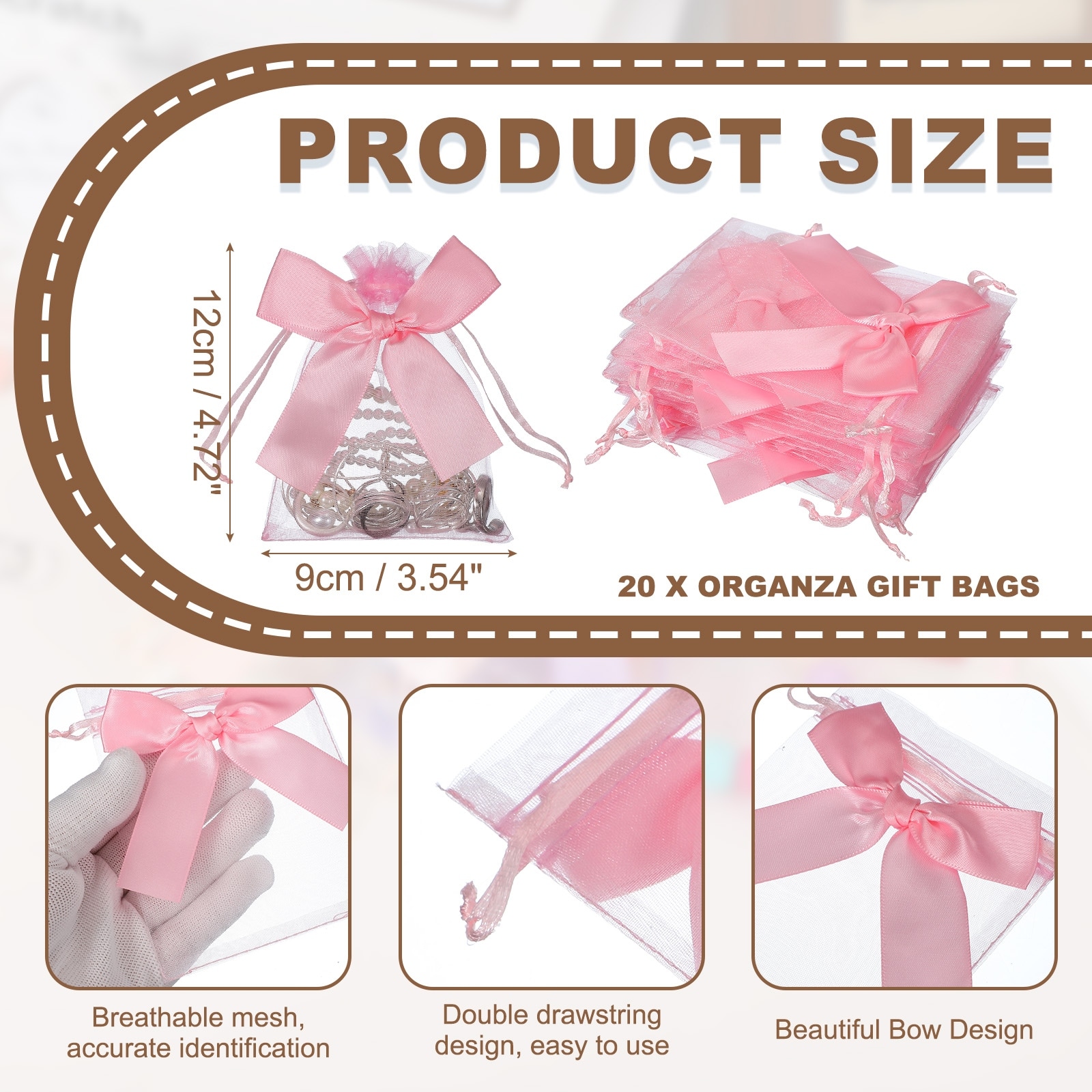 20 Pcs Bow Organza Gift Bags, Wedding Favor Bag(3.5x4.7 Inch Pink)