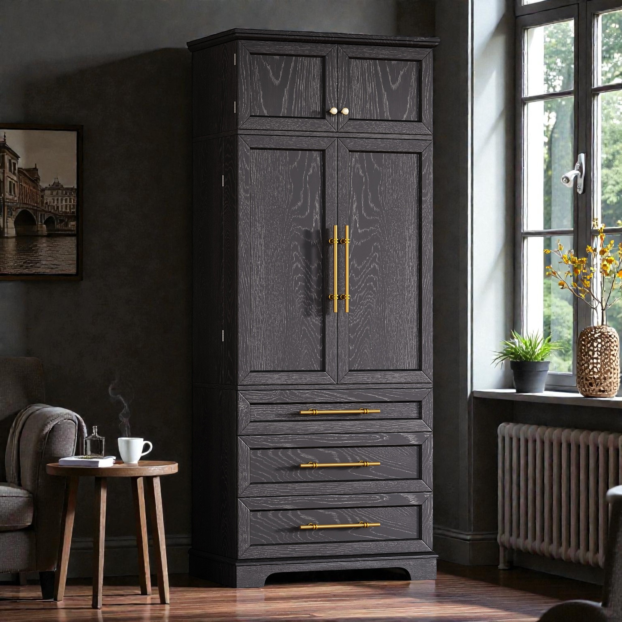 71" Tall Kitchen Pantry Cabinet with 3 Pull-Out Cabinet Organizers