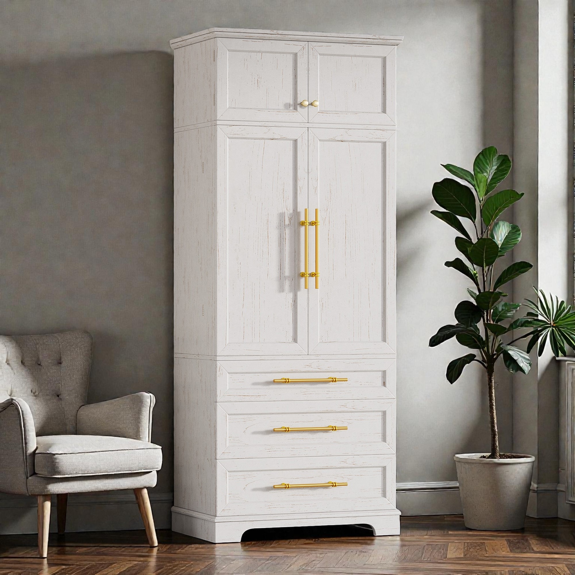 Tall Farmhouse Kitchen Pantry Cabinet with 8 Door Shelves, 3 Adjustable Shelves and 3 Drawers, Freestanding Storage Cupboard