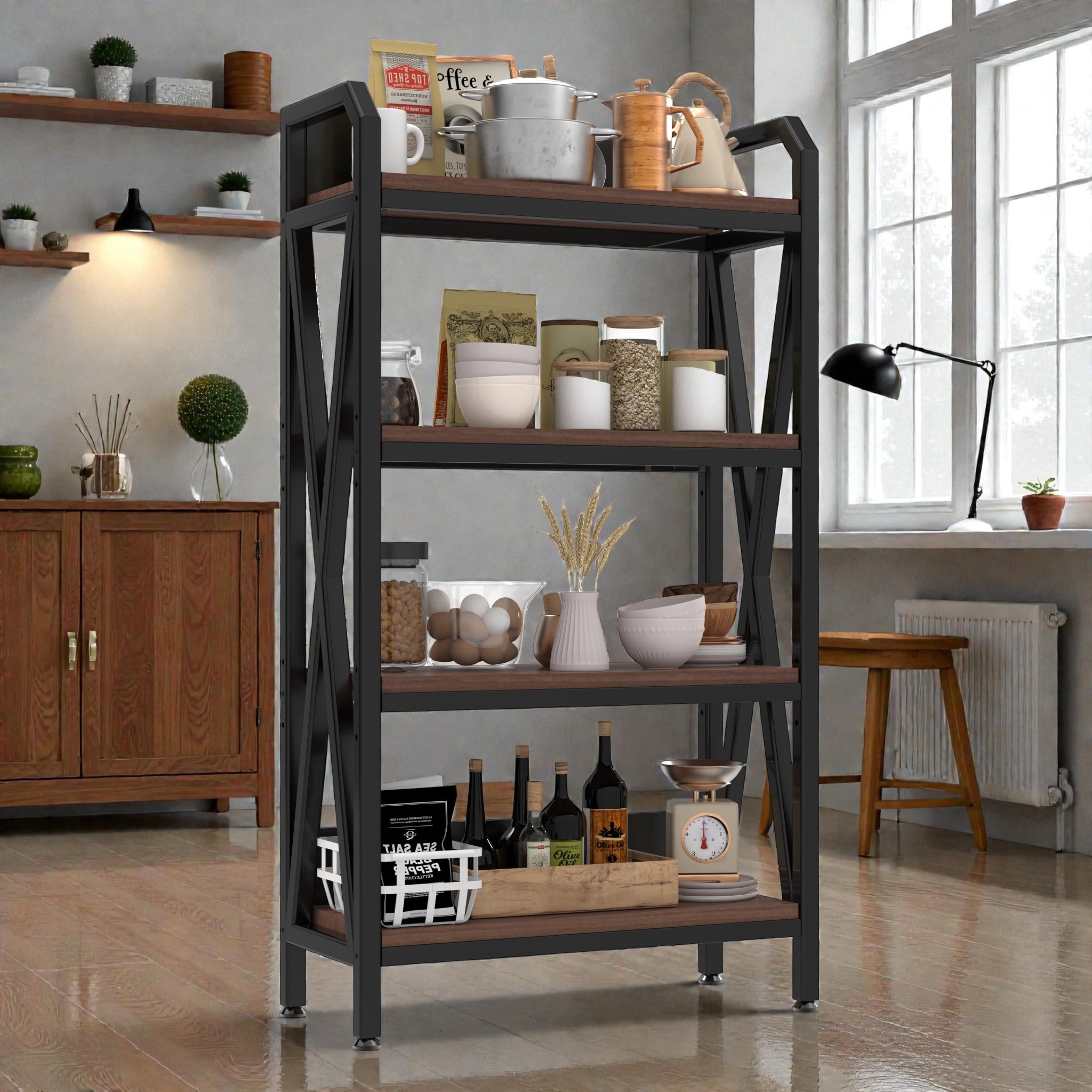 4 Tier Bakers Rack Kitchen Storage Shelves, Buffet Cabinet, Sideboard, Storage Cabinet, Wood Shelving Organizer for Pantry