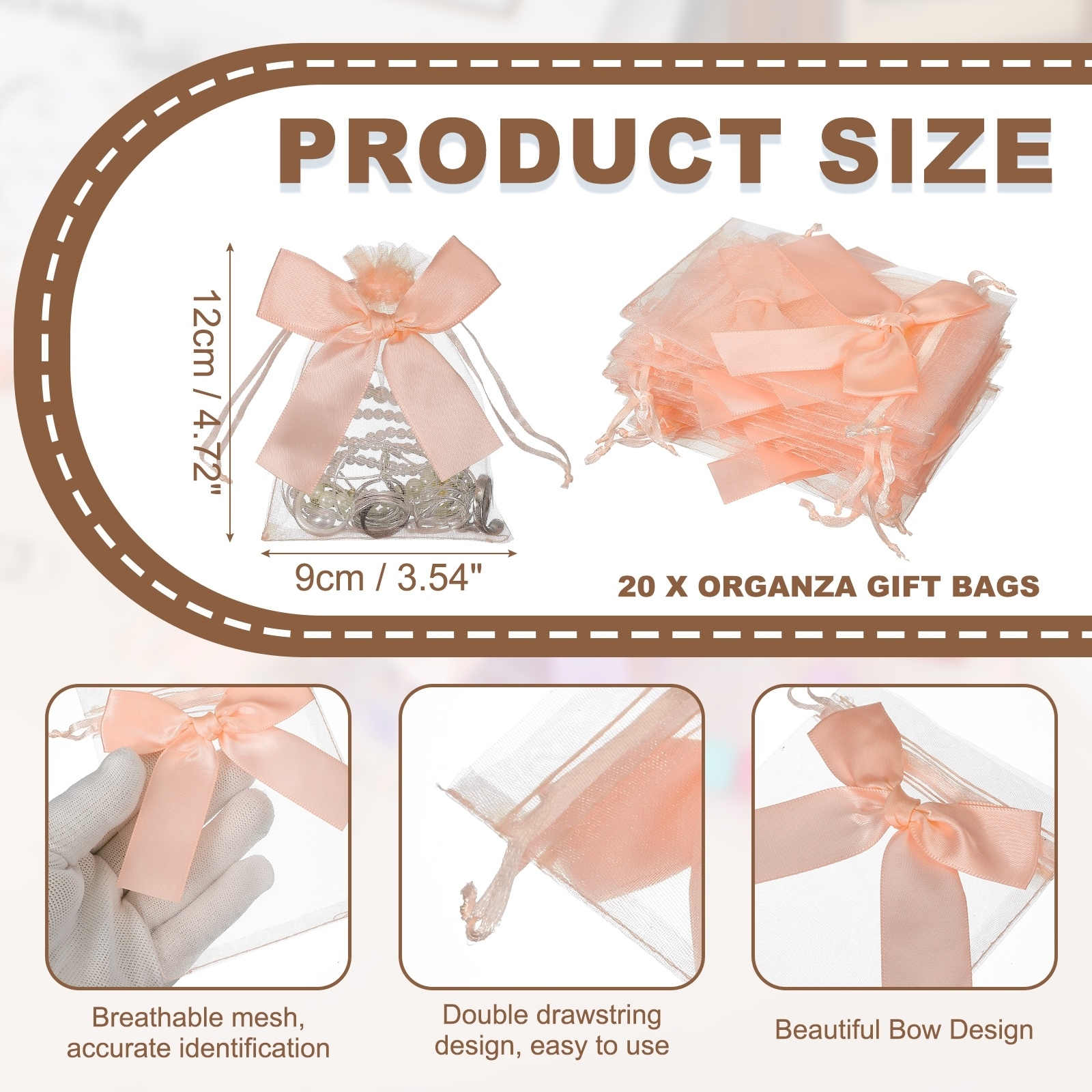 20 Pcs Bow Organza Gift Bags, Wedding Favor Bag(3.5x4.7 Inch Pink)
