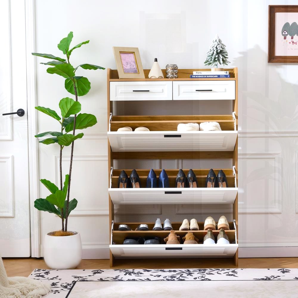 White Shoe Cabinet with 2 Drawers and Three Fold Doors