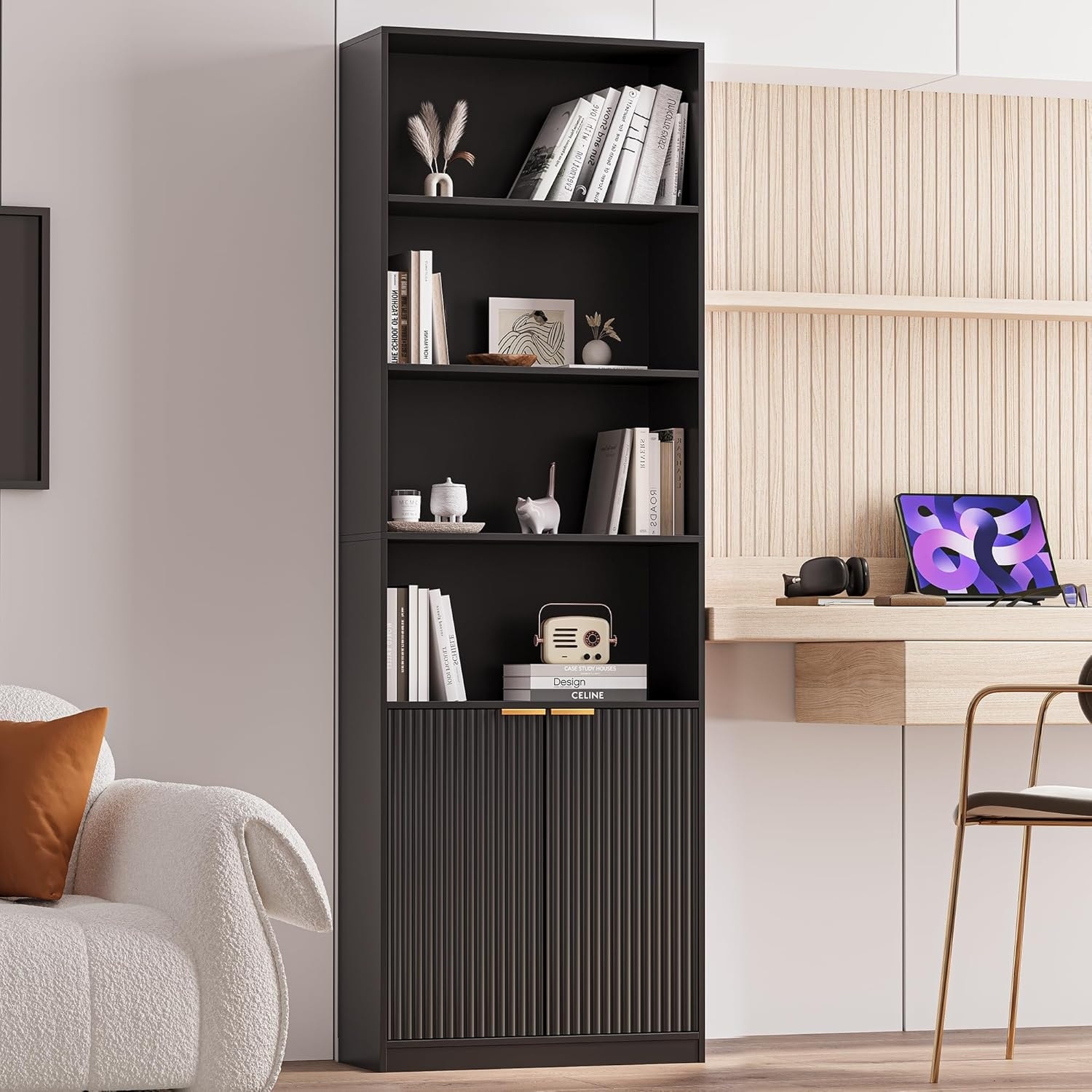 72 Inch Tall 6-Shelf Bookcase with Doors, Floor Standing Storage Cabinet for Living Room, Bedroom & Office