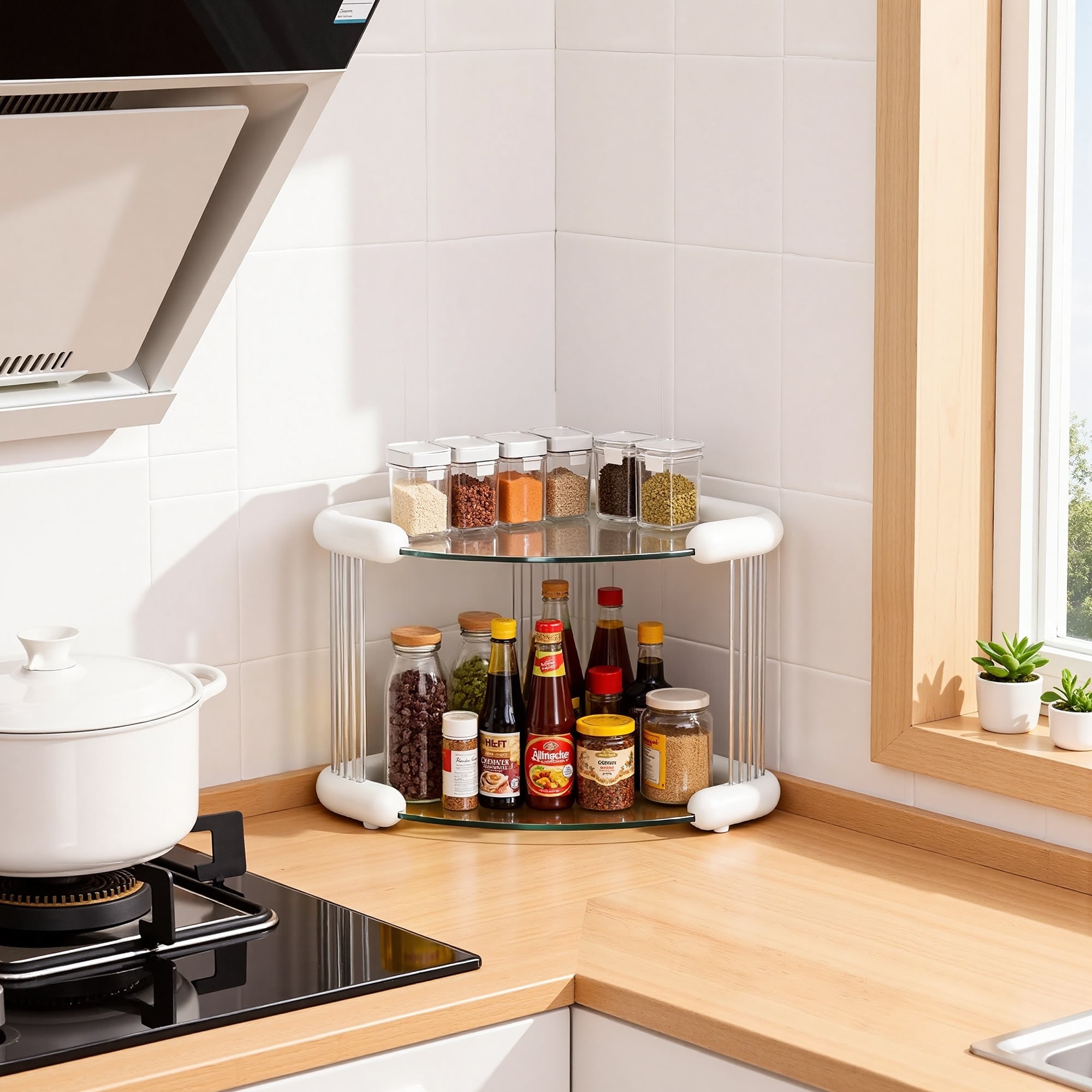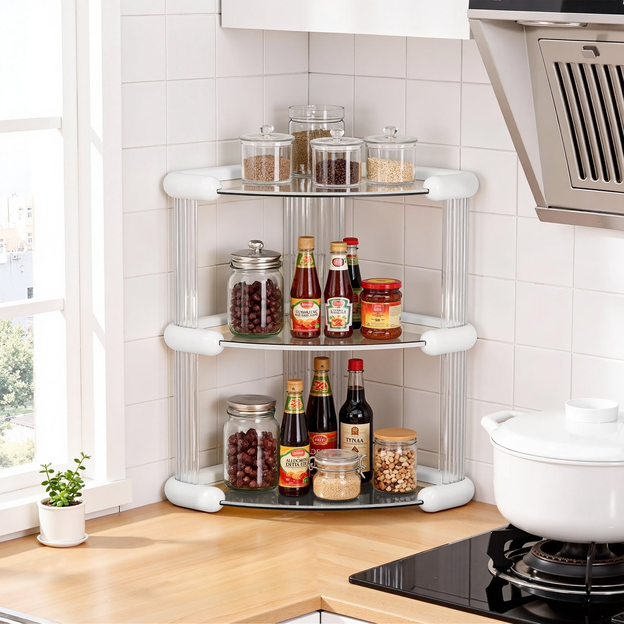 2-Tier & 3-Tier Corner Storage Organizer Transparent Multi-Purpose Plastic Corner Shelf for Bathroom Kitchen Bedroom