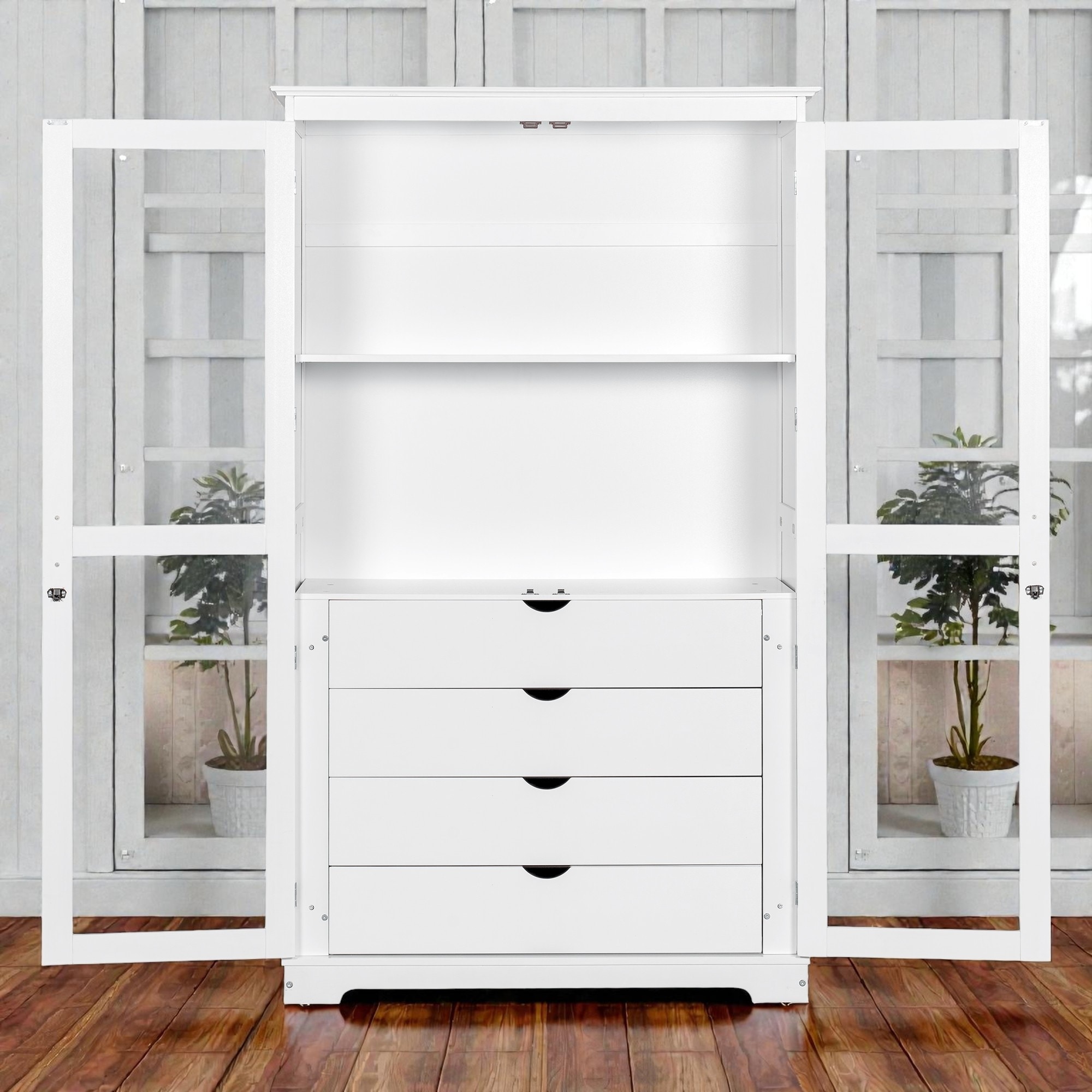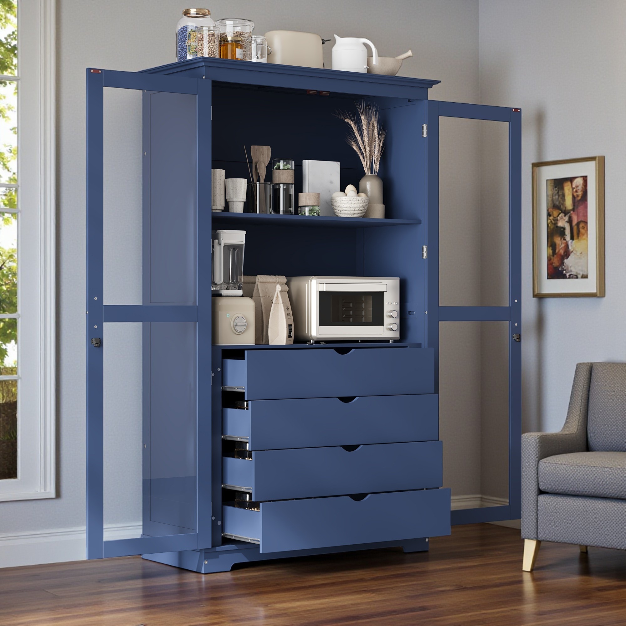 44.7 Inch Kitchen Pantry Cabinet with Glass Doors and Drawers, Freestanding Solid Wood Storage Display Cabinet, Coffee Cabinet
