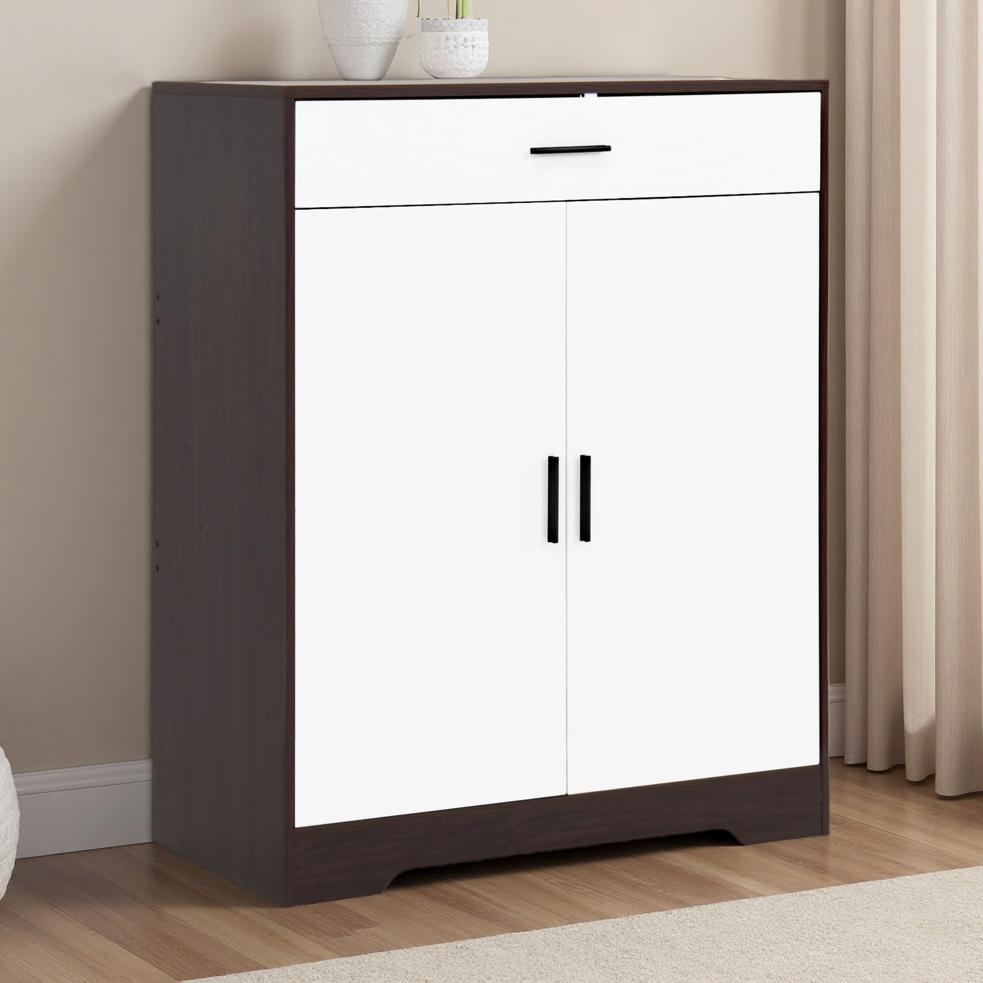Freestanding Wooden Shoe Cabinet with 1 Drawer and Adjustable Shelves
