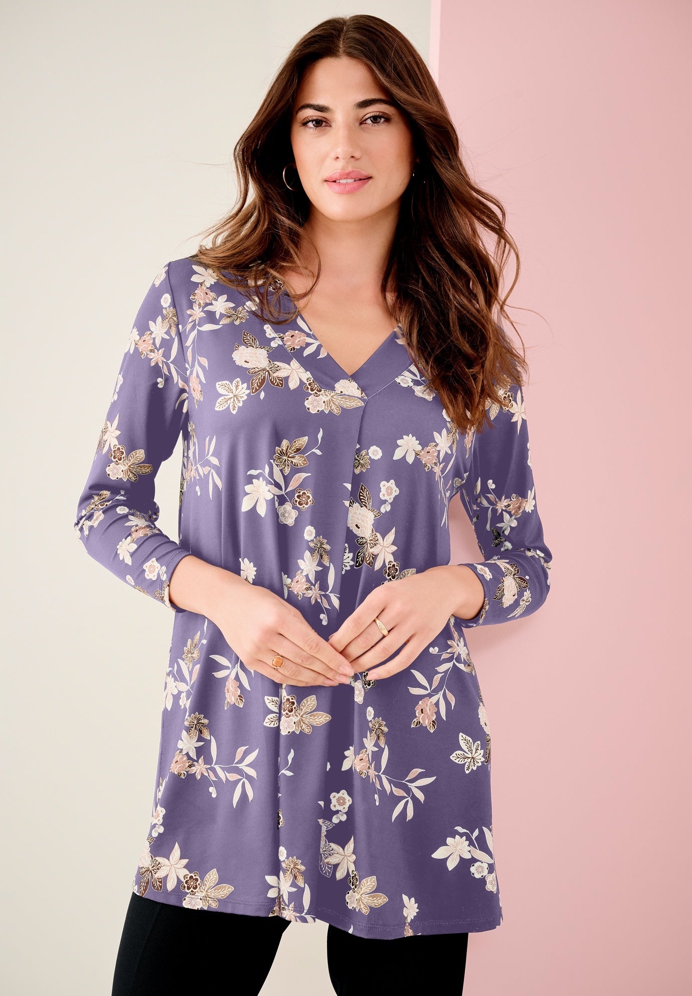 Plus Size Women's Banded V-neck Blouse by Roaman's in Soft Grape (Size 30/32)