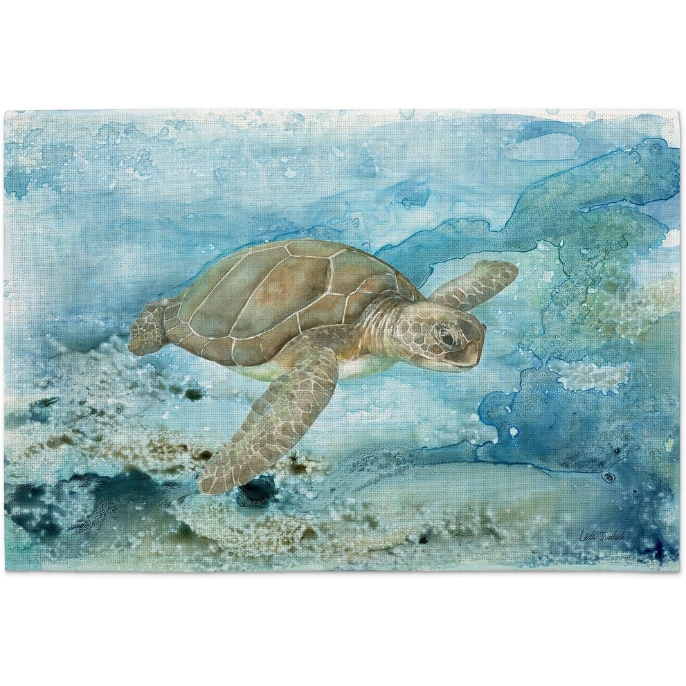 Sea Turtle 4-Pack Poly-Cotton Blend Placemats Manufactured in The USA Machine Washable Dryer Safe