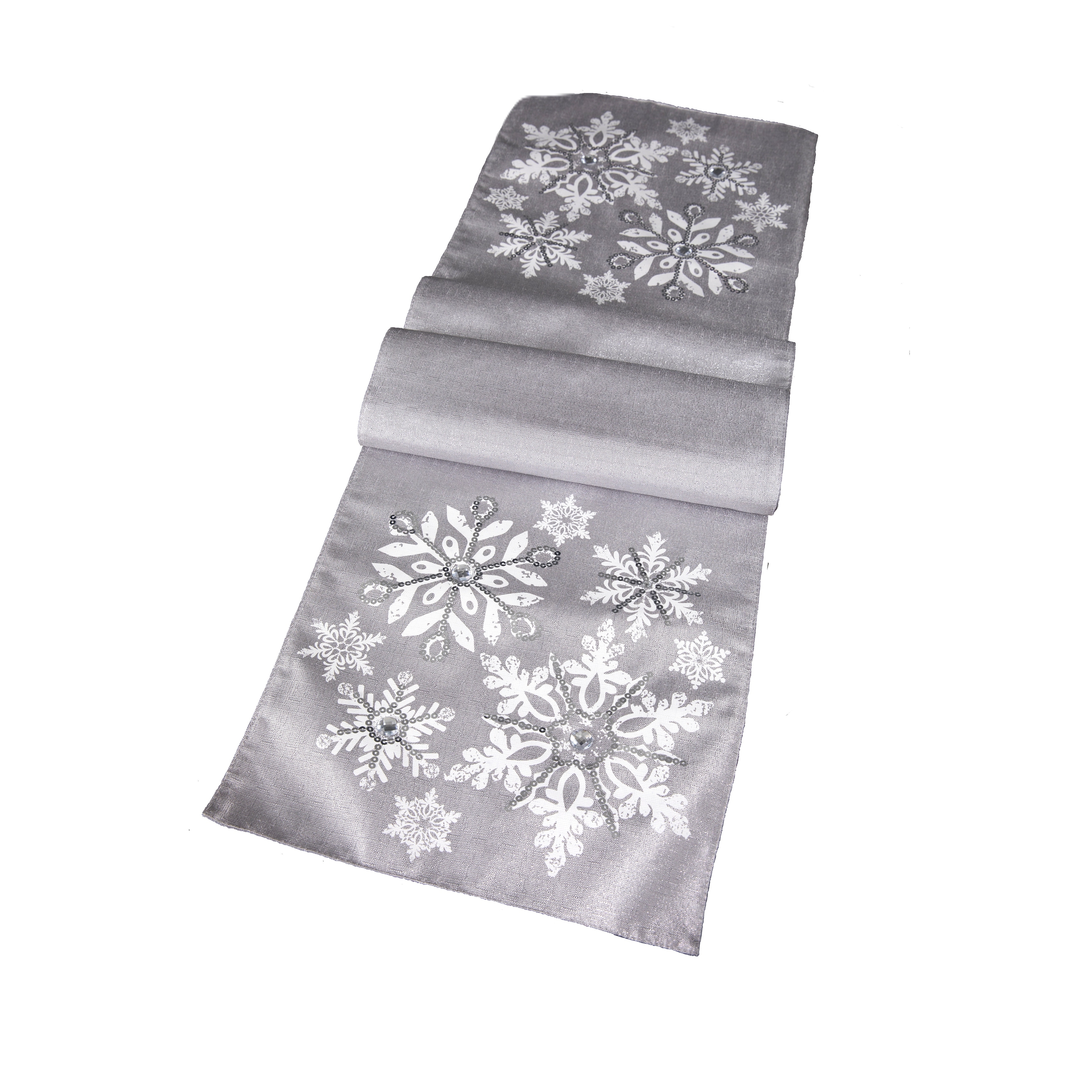 Holiday Poinsettia Embroidered Cutwork Mini Table Runner, 12 by 28-Inch