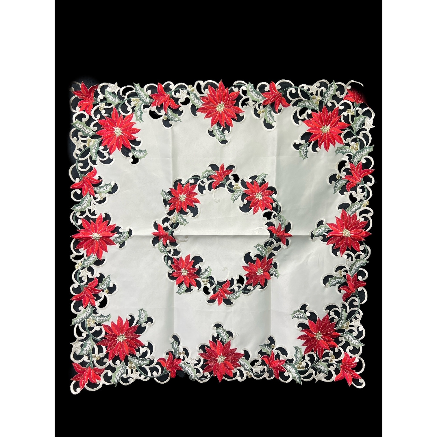 Christmas Poinsettia Embroidered Cutwork Square tablecloth, 36 inch Square
