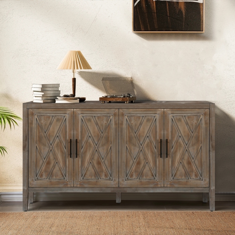 Buffet Cabinet with Solid Wood Legs and Adjustable Shelves