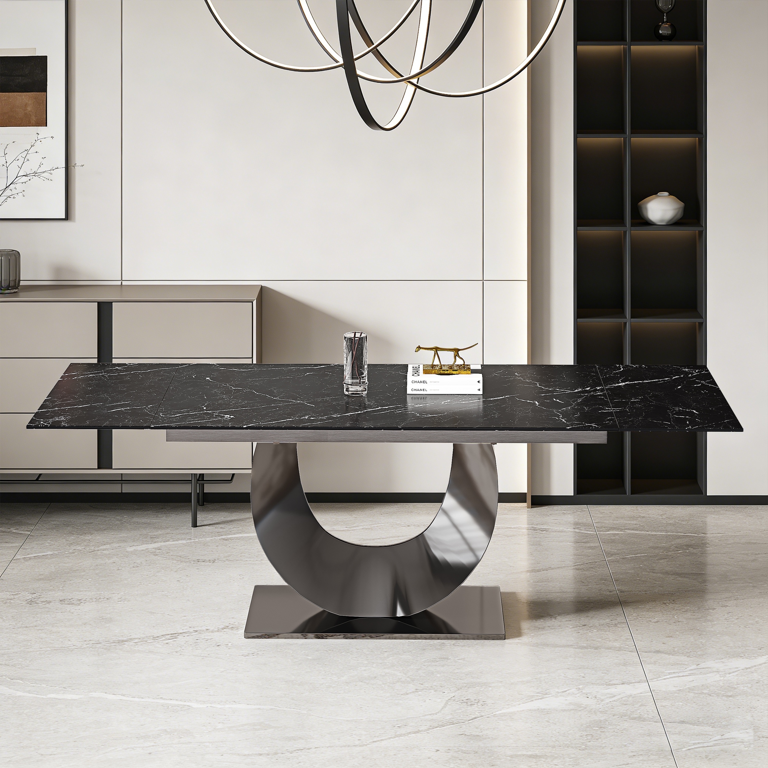 94" Extendable Rectangular Sintered Stone Modern Dining Table Seat For 6-10