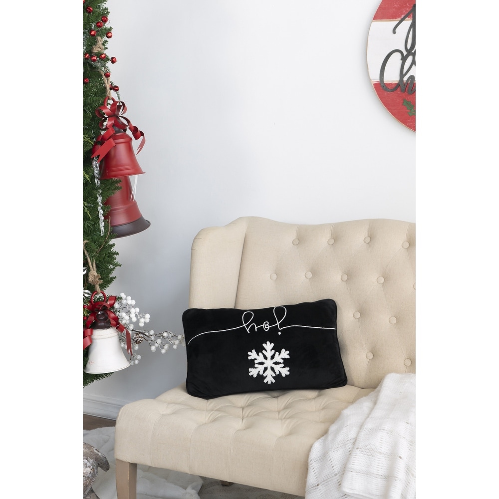 Set of 2,Black Velvet Pillow With Embroidered Joy And Frosty Snowflake, for Christmas Holiday Decor