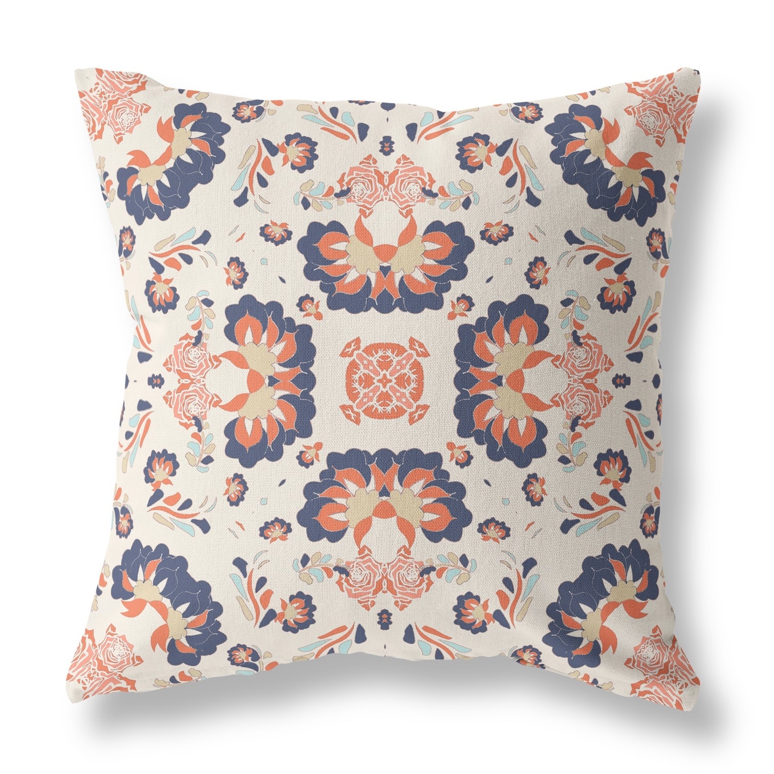 20" X 20" Off White And Orange Broadcloth Floral Throw Pillow