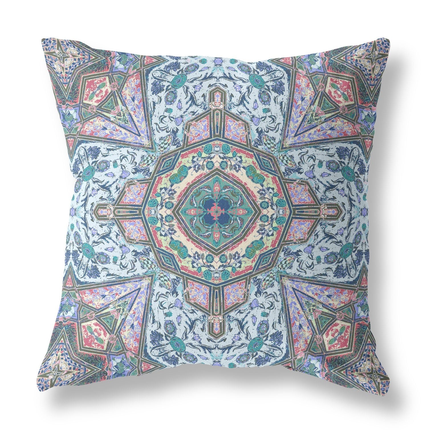20" Pale Blue Pink Floral Medallion Suede Throw Pillow