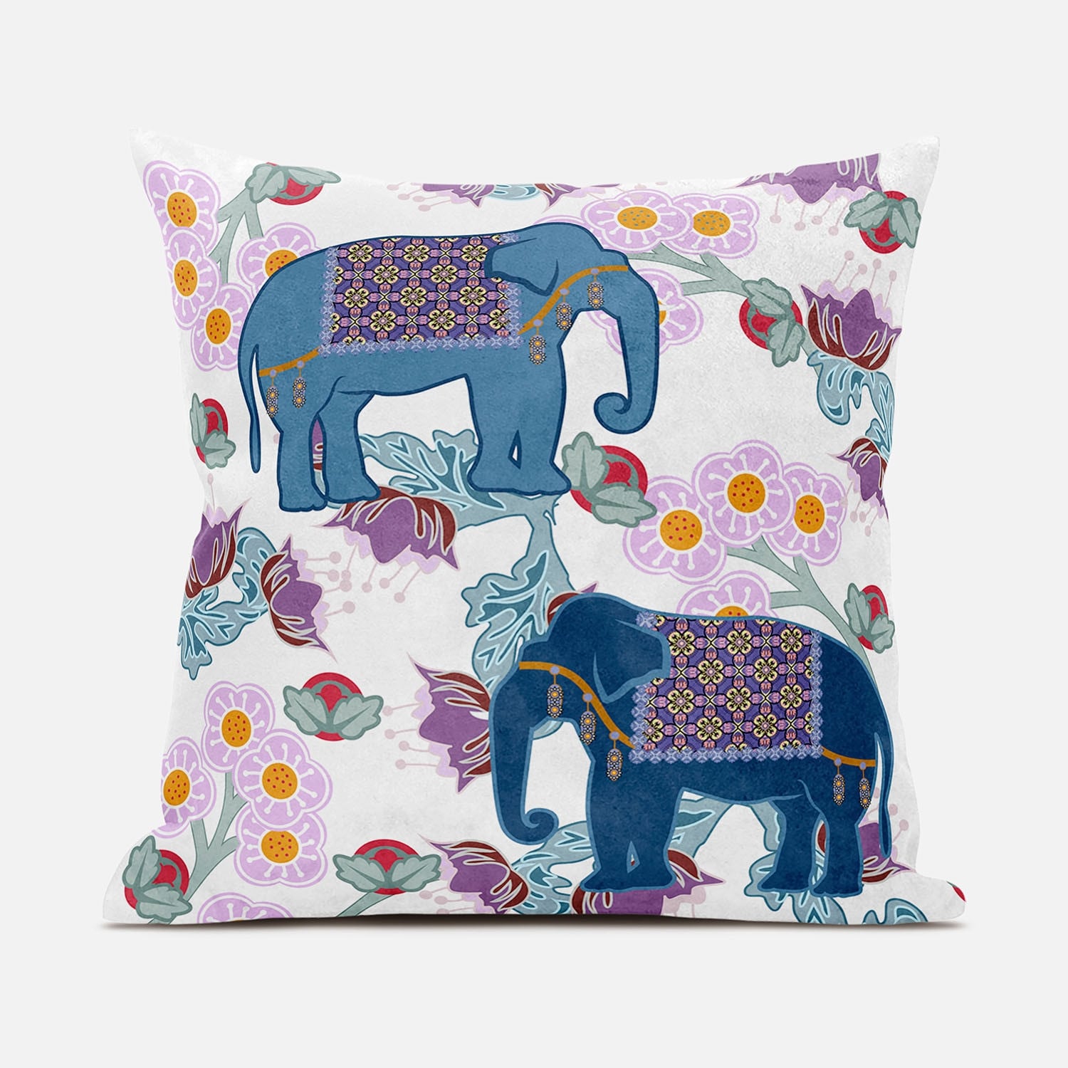 16x16 Blue Pink Gray Elephant Blown Seam Broadcloth Animal Print Throw Pillow