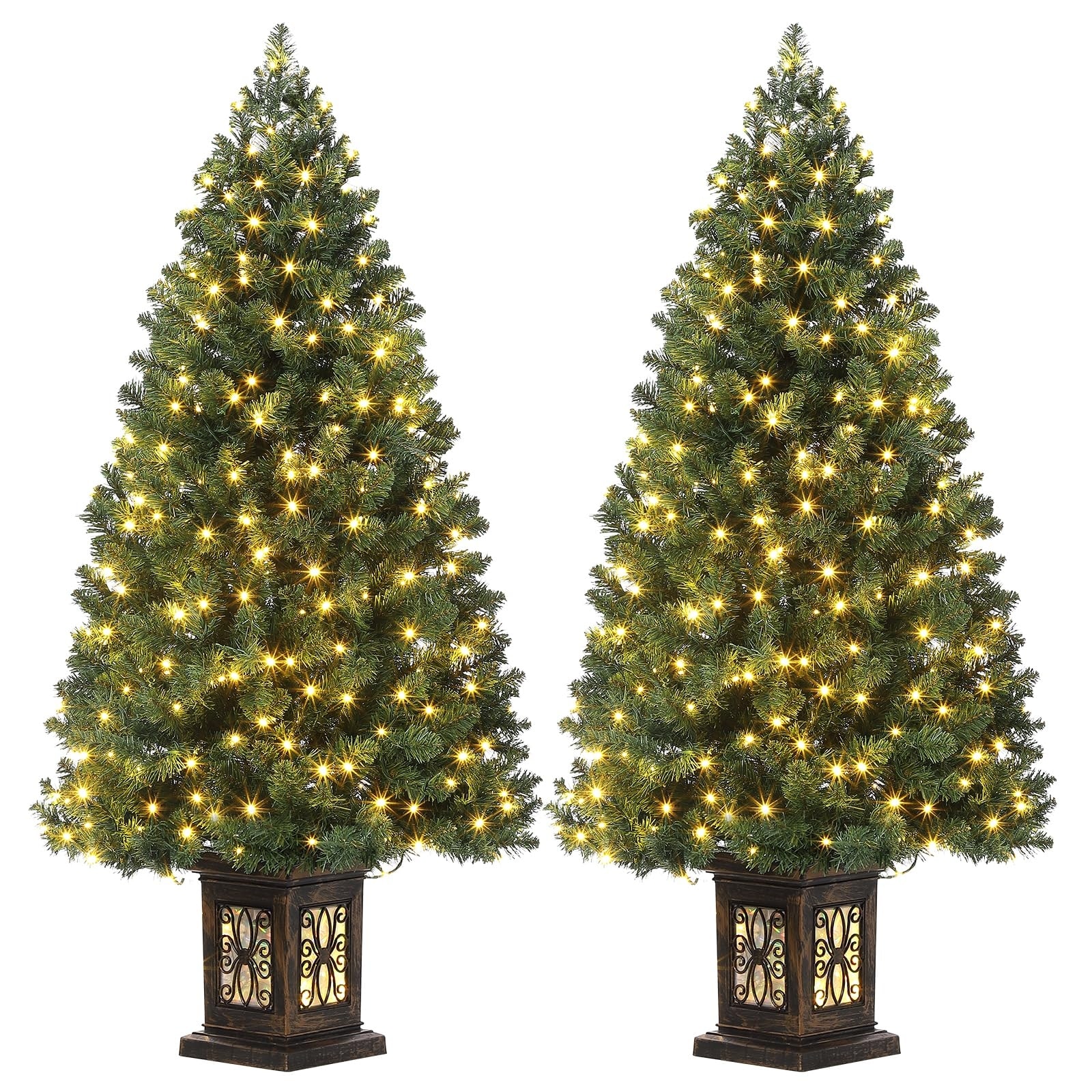 4.5 Ft Artificial Christmas Tree with 200 Warm White LED Lights and Red Berries Potted Base Holiday Xmas Tree