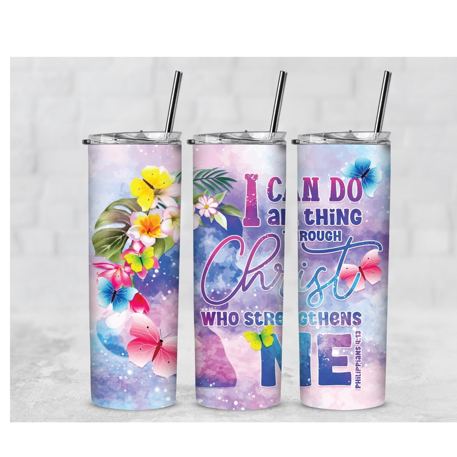 I Can Do All Things Through Christ Christian 20 Oz Metal Tumbler w/Lid and Straw - Multi