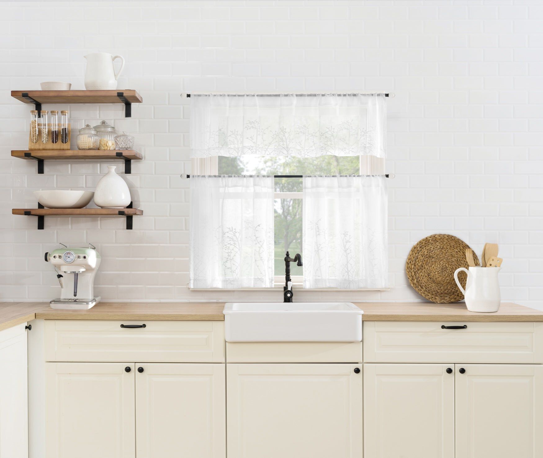 Wide Width Hunter Window Curtain Tier Pair And Valance Set by Achim Home Décor in Tan (Size 57" W 24" L)
