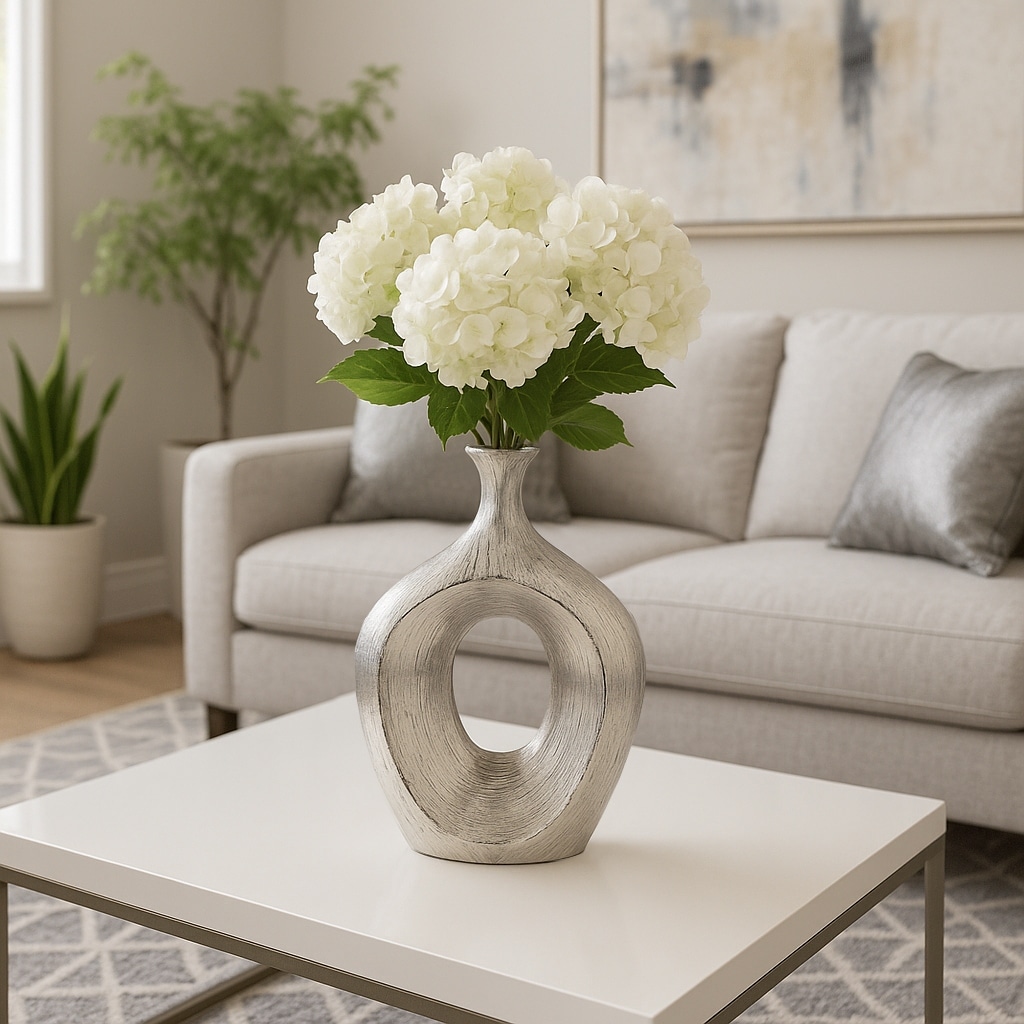 Modern Ceramic Textured Oval Cut-Out Vase - Home Decor - 13"