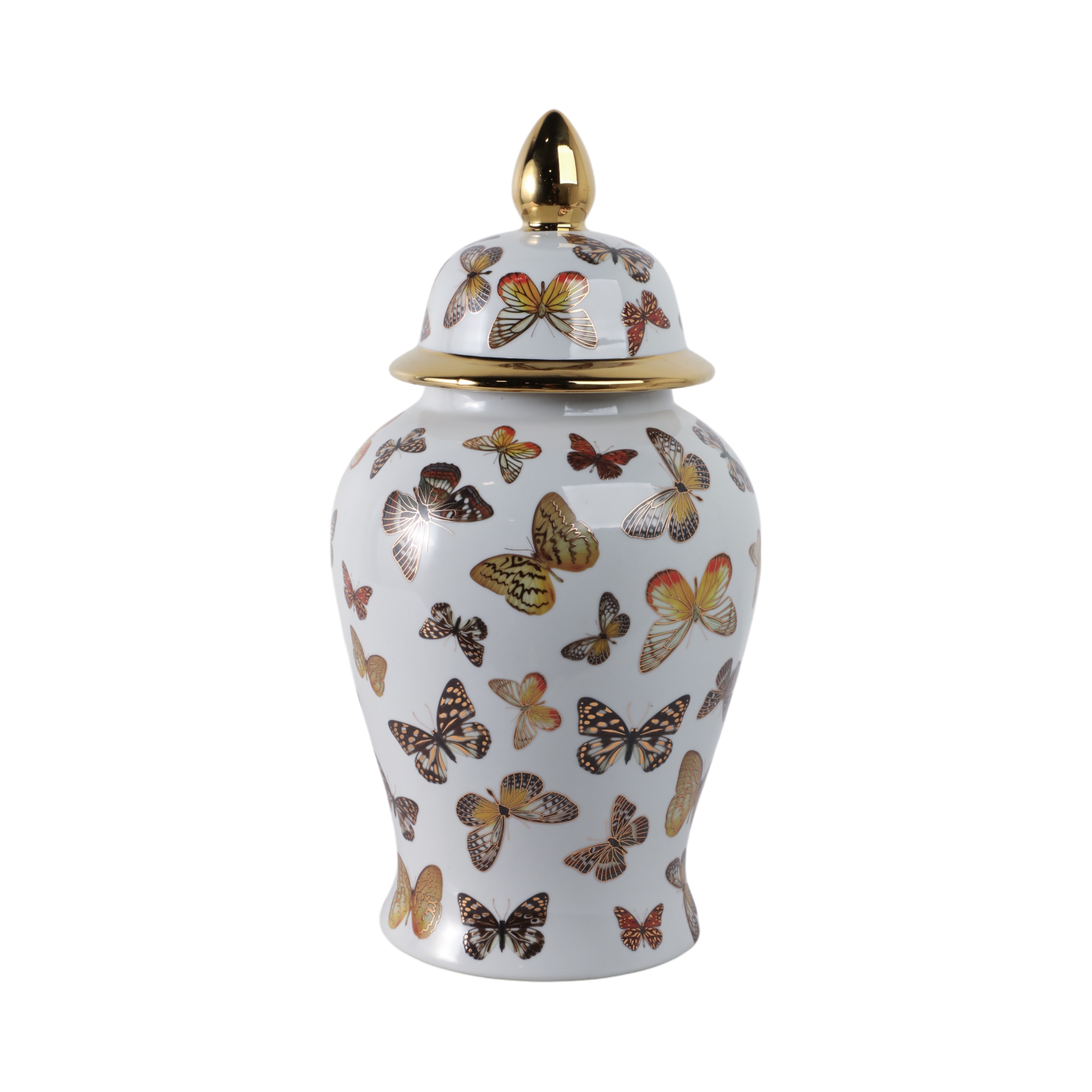 Ceramic Decorative Temple Jar with Lid and Metallic Butterfly Motif