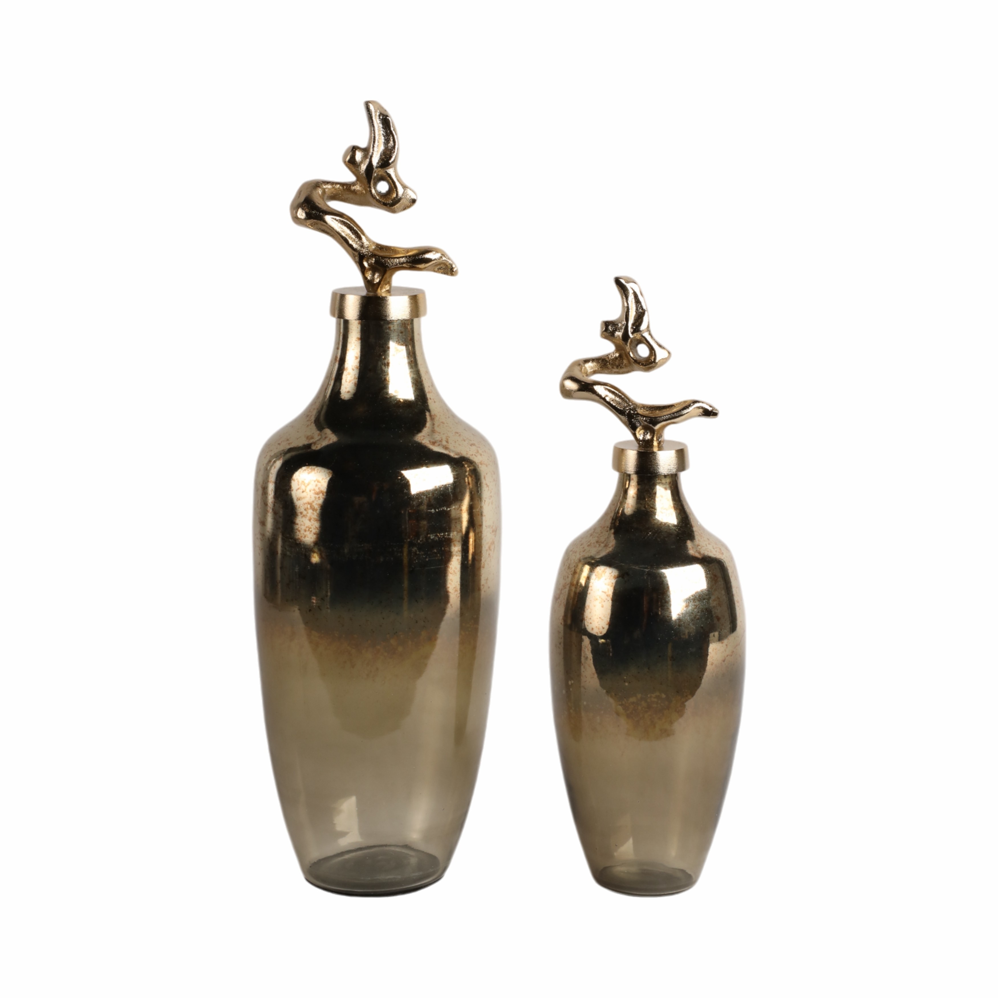Sagebrook Home Lusaka Glass Bottle, Gold