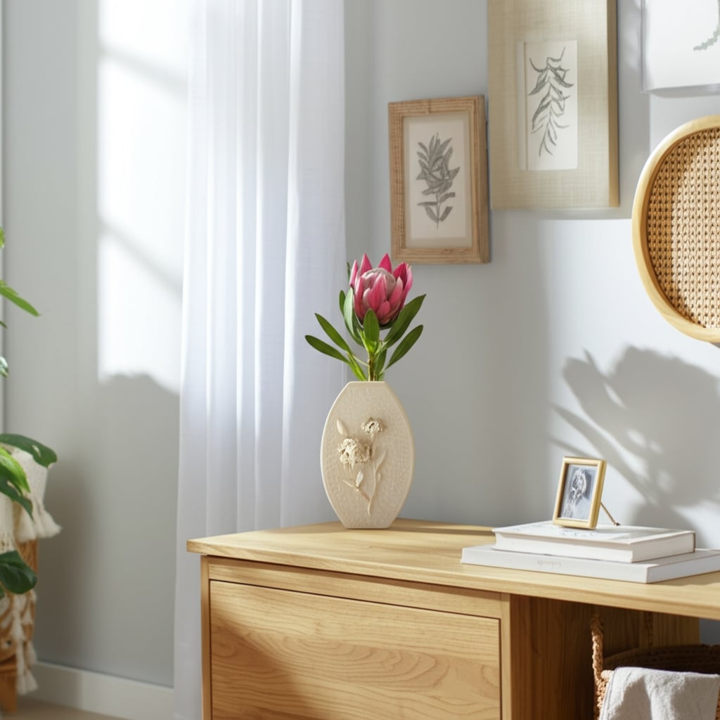 Ceramic Earthenware Textured Vase with Tapered Rim and Organic Pattern