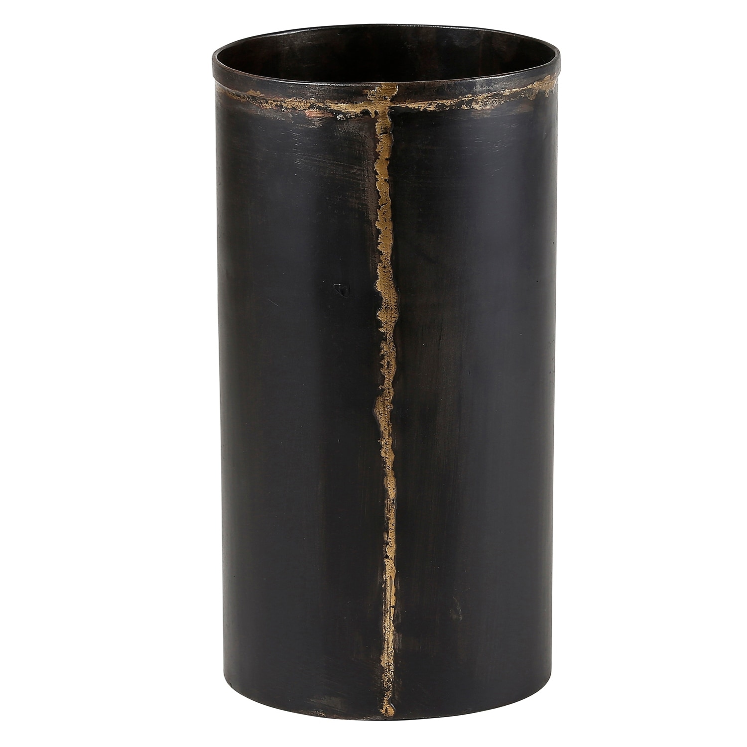 Black Metal Tall Ribbed Decorative Vase with Gold Tops (Set of 2)