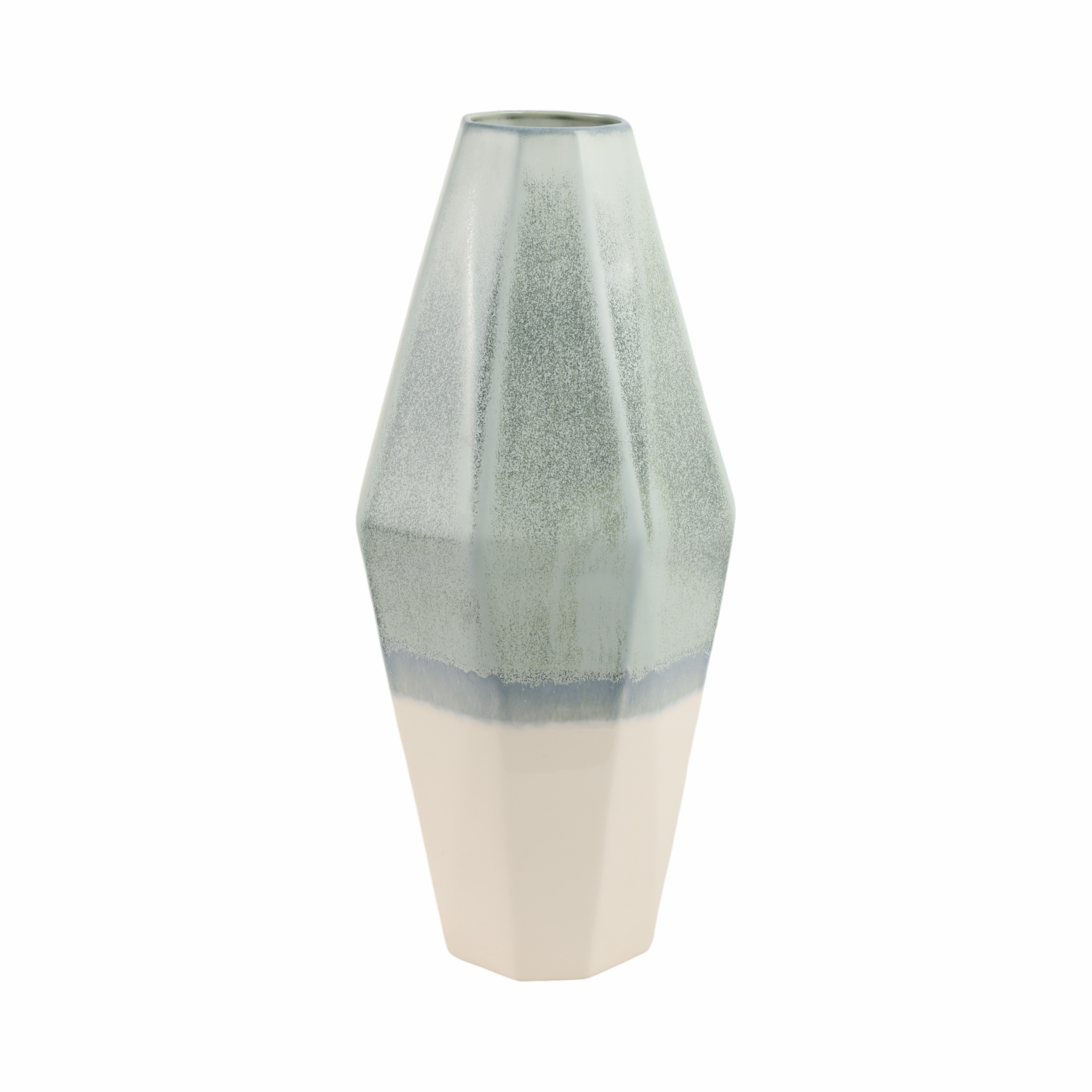 Earthenware Vase Faceted Design Ombre Finish Modern Geometric Style