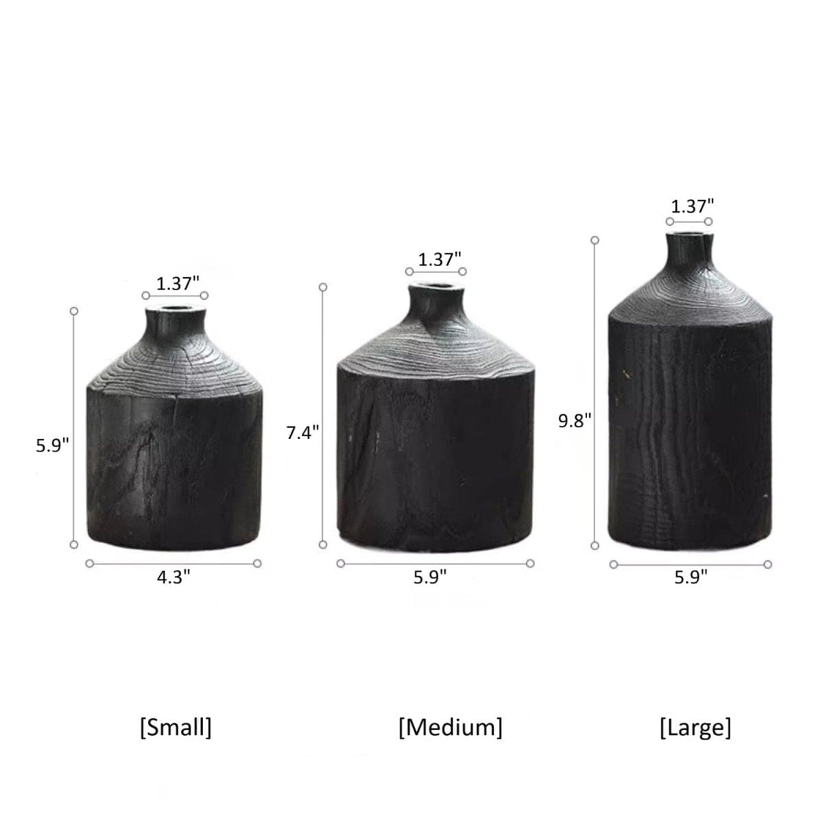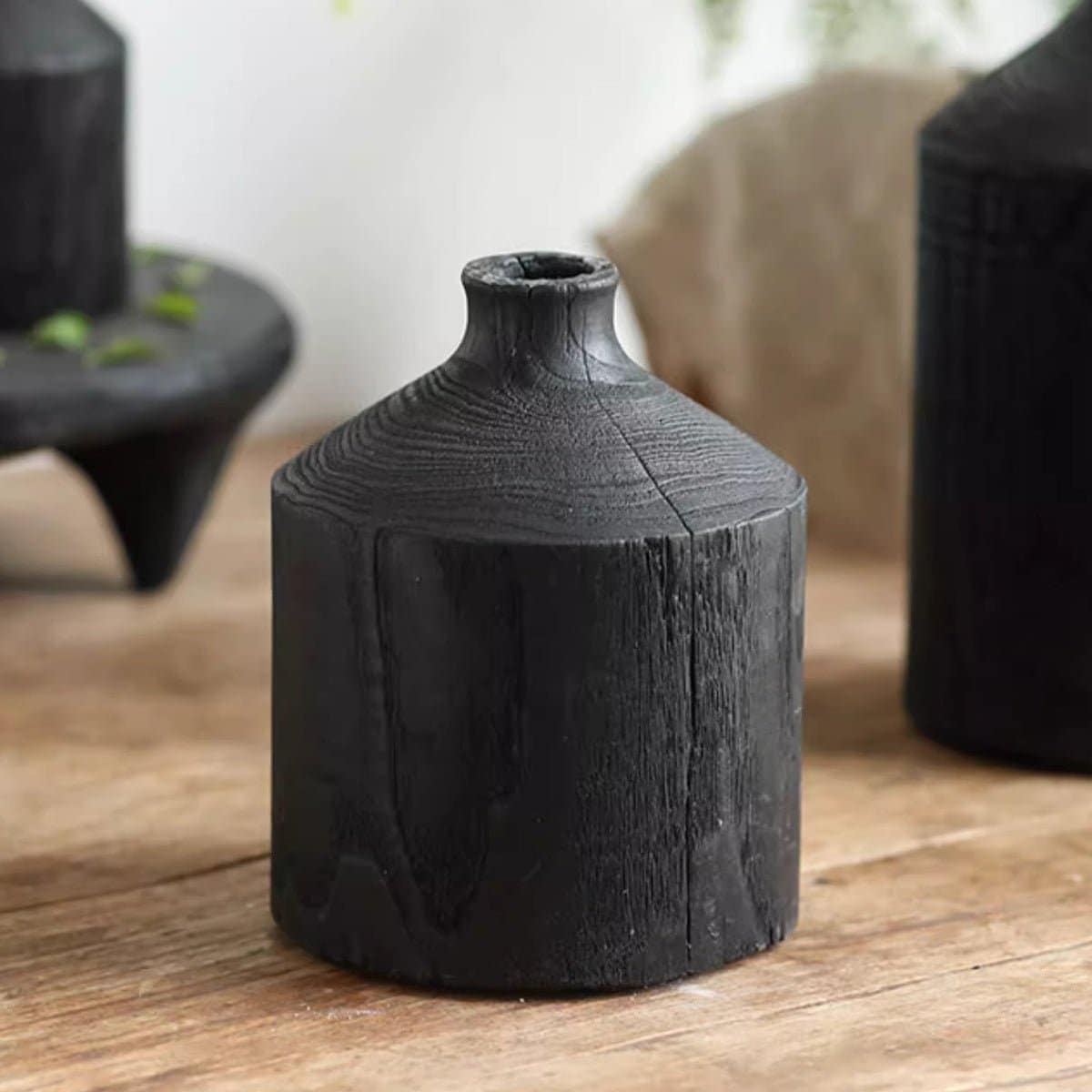 RusticReach Black Wooden Vase Narrow Neck Decorative Bottle