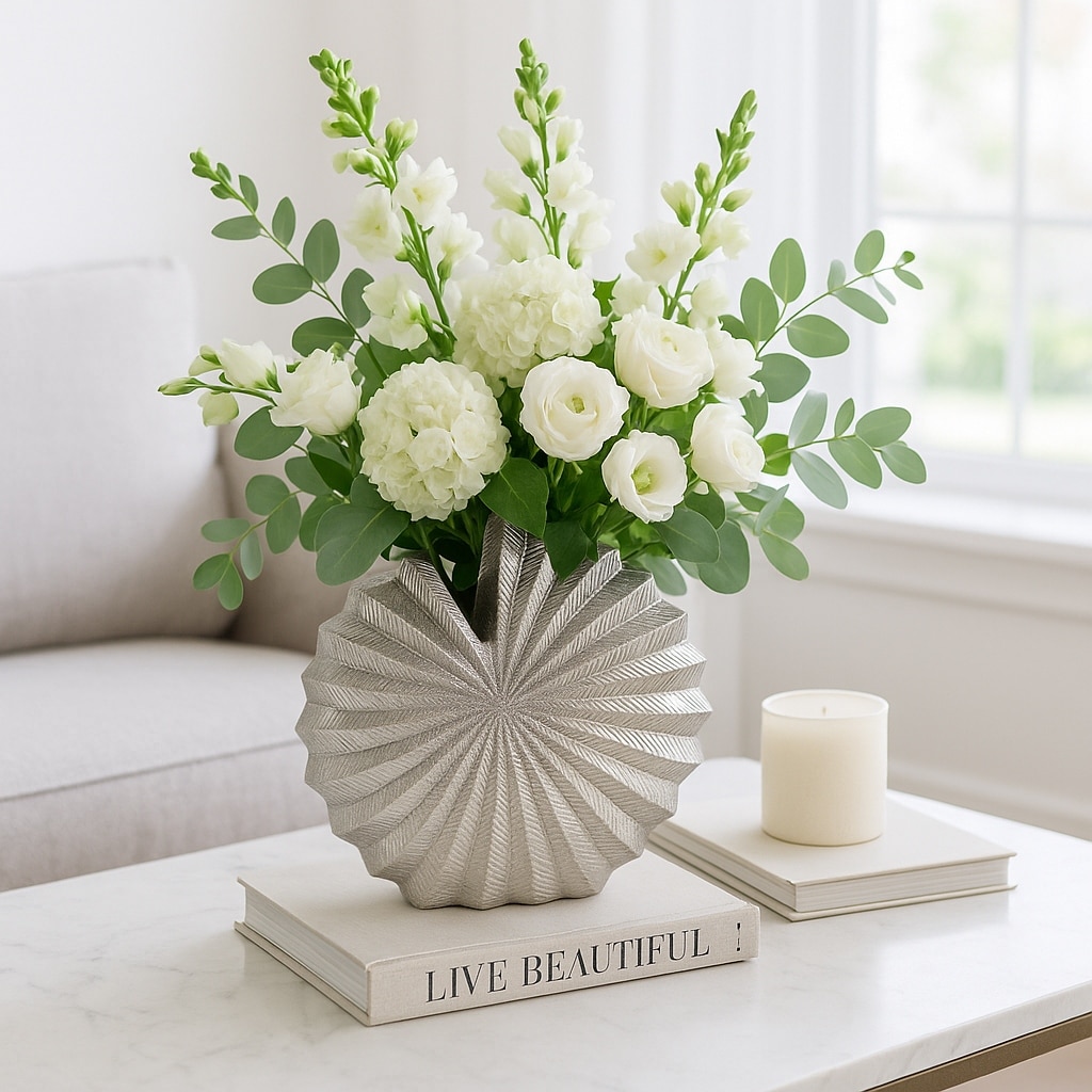 Metal Vase Aluminum Decorative Accent Coastal Glam Style - 10" Silver