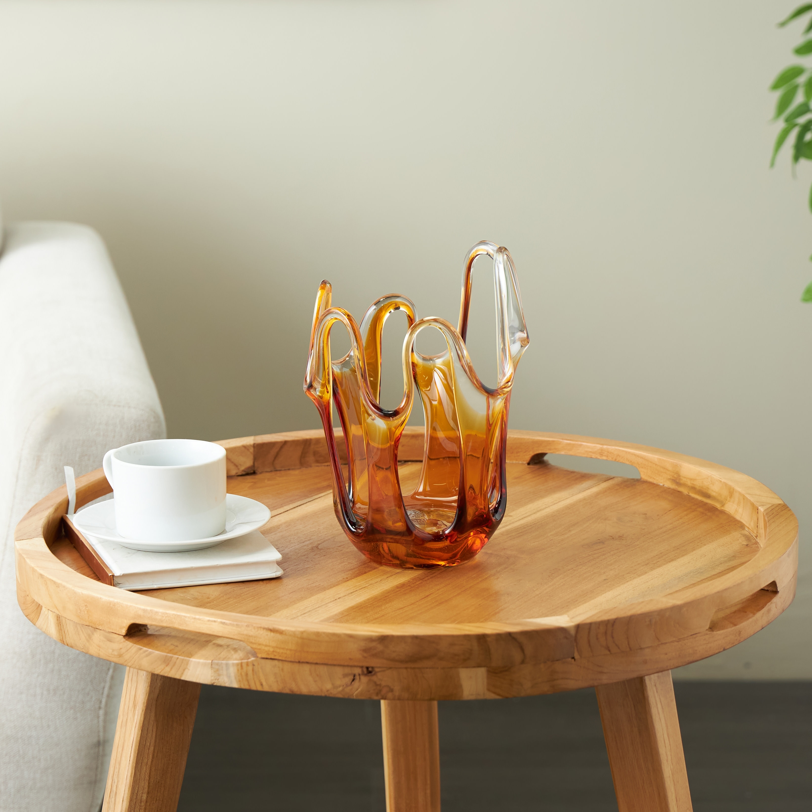 Glass Decorative Vase Modern Sculptural Metal Accent Artisan Details