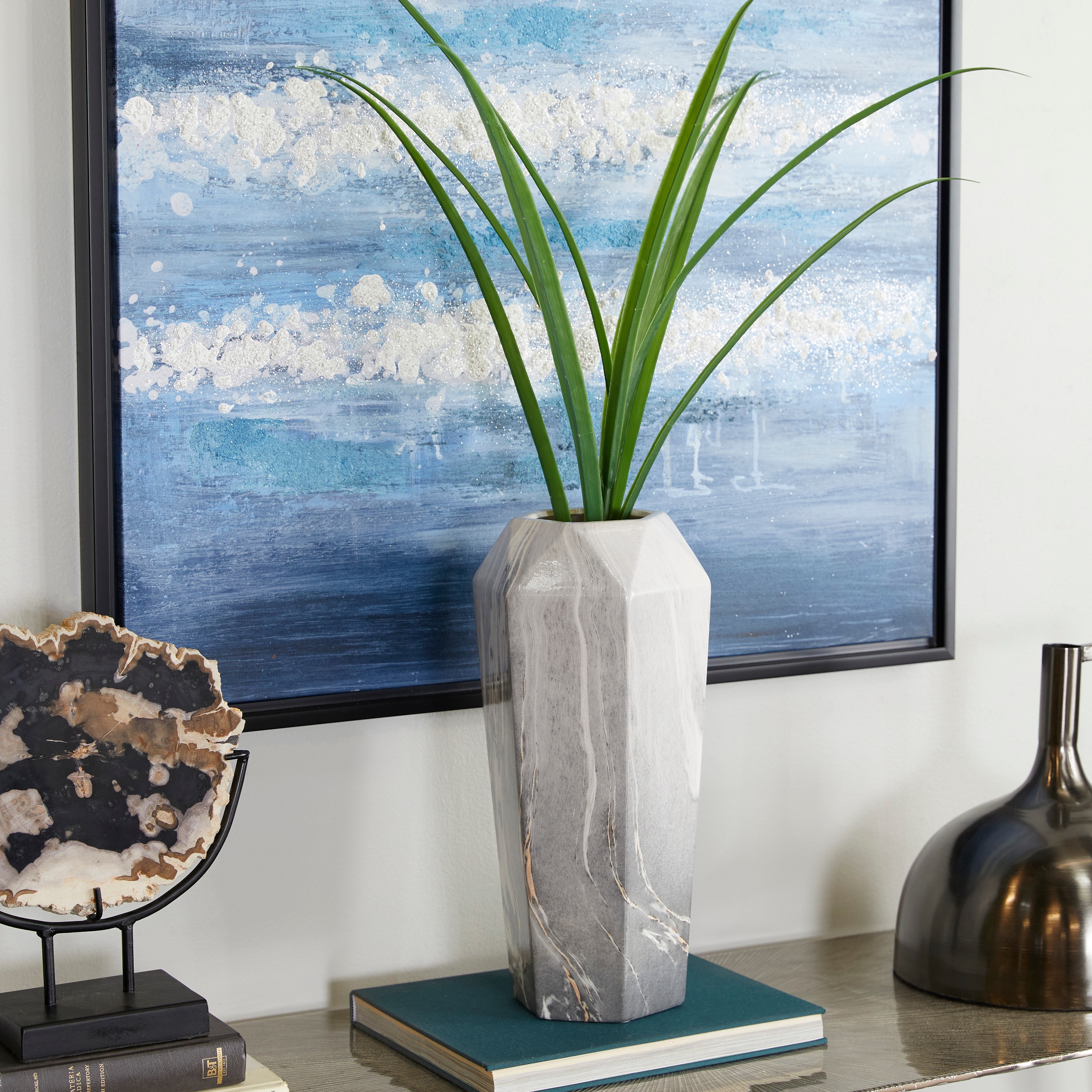 Black Ceramic Faux Marble Decorative Vase