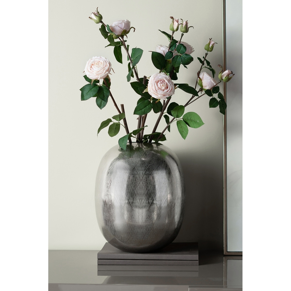 12.5x12.5x15" Aluminum Vase with Silver Streak Finish Modern Home Decor