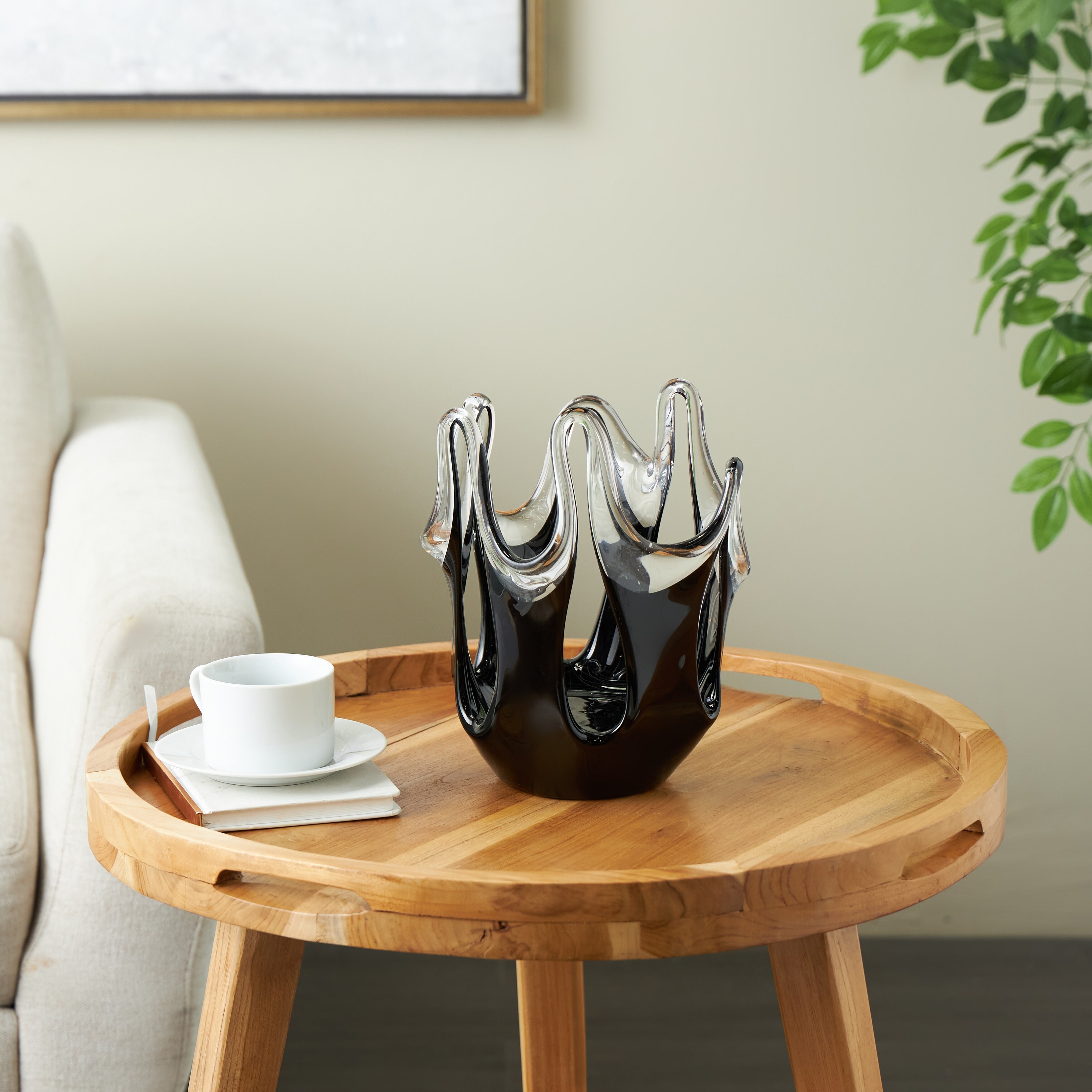 Blue or Black Glass Abstract Decorative Vase with Wavy Oval Cutouts