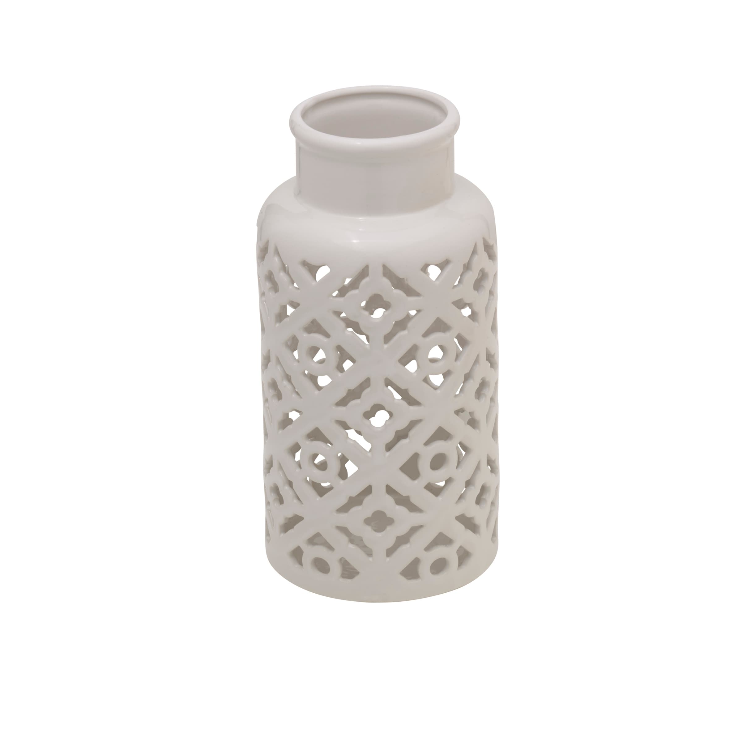 Elements White Pierced Ceramic Vase, 5X11 Inch