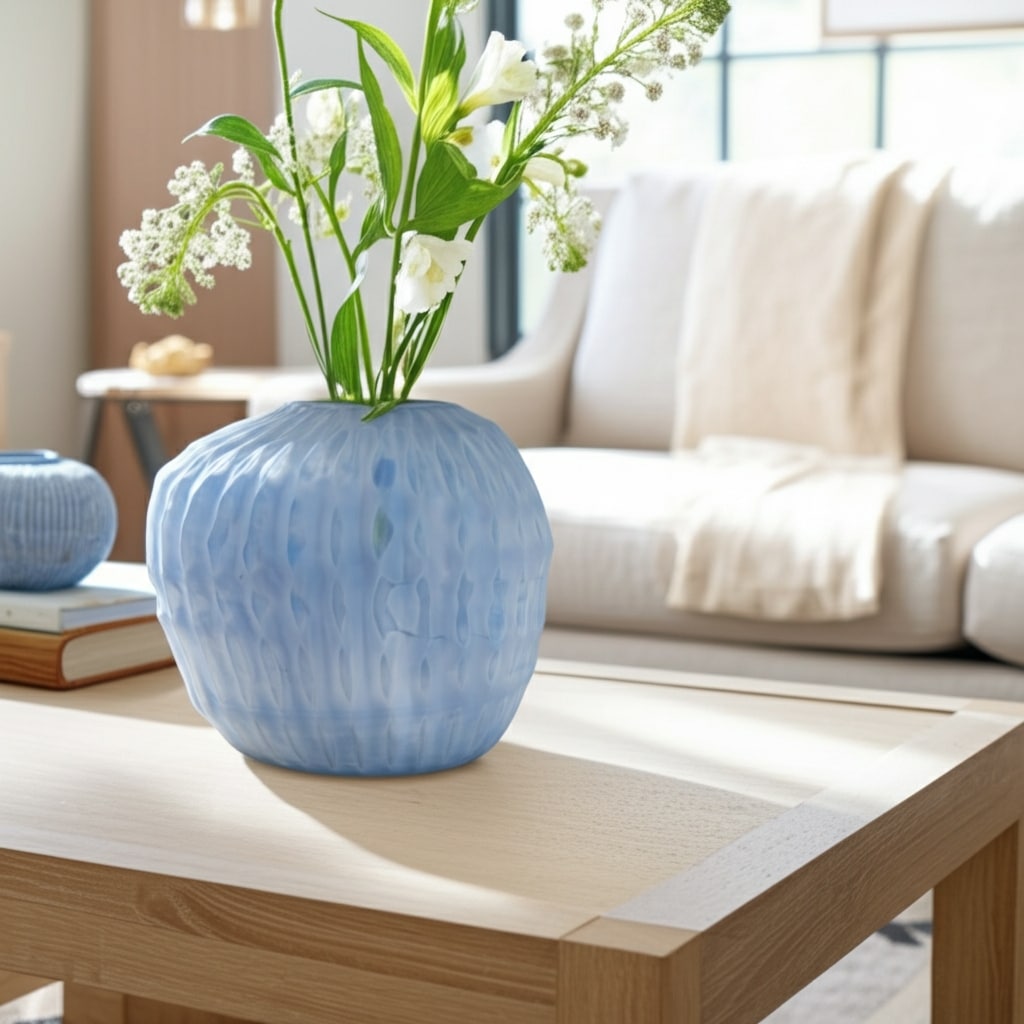 Glass Vase Ribbed Abstract Pattern for Flower Arrangement Home Decor