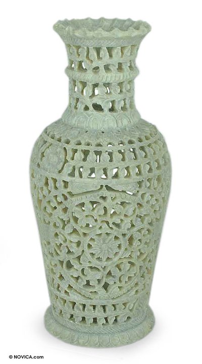 'Floral Honor' - Fair Trade Soapstone Vase Decorative Hand Crafted