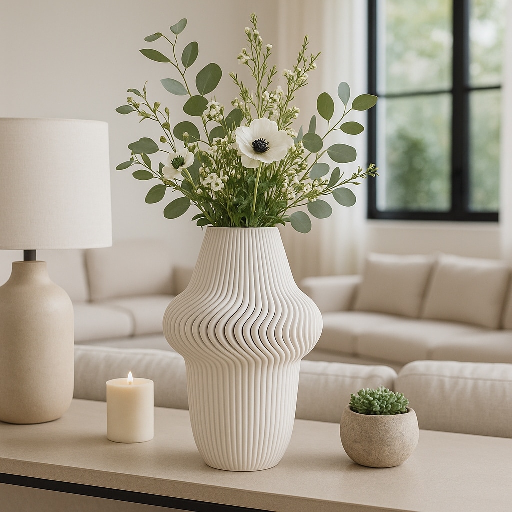 Porcelain Ribbed 3D Printed Vase - Ivory/Beige
