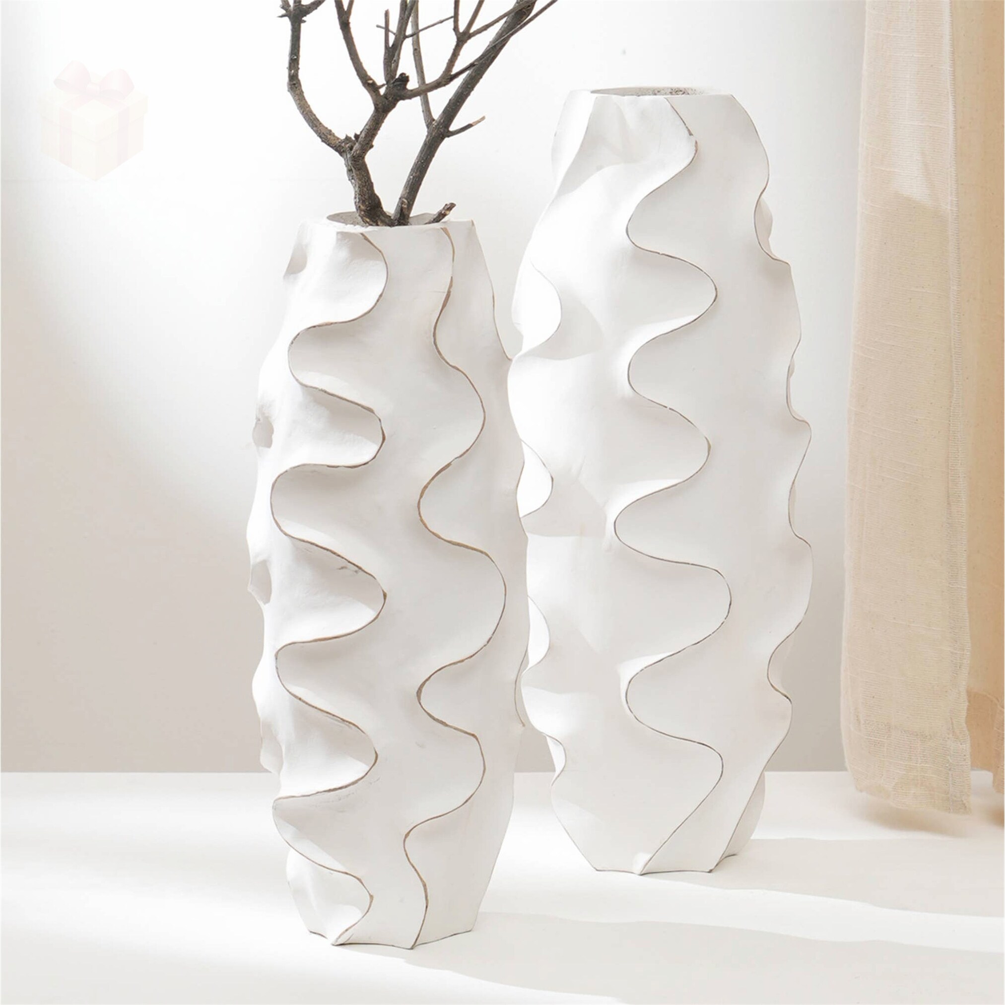 Set of 3 Metal Decorative Glazed Vase with 3D Pattern for Home Office - 28.7in+24.8in+20.8in