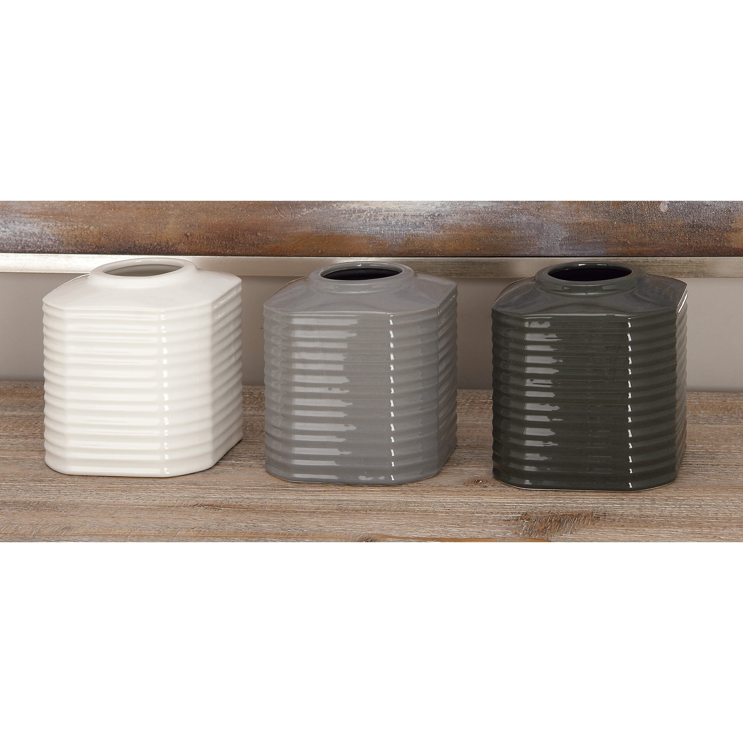 Stoneware Decorative Vases Sleek Sculptural Design Modern (Set of 3)