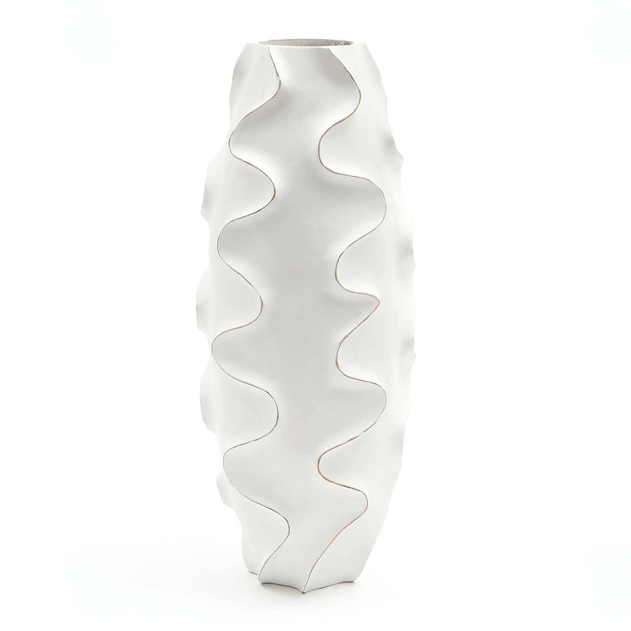 Handcrafted Mango Wood White Vase for Elegant Living Room Decor, 6X17 Inches, Perfect for Modern and Traditional Interiors.