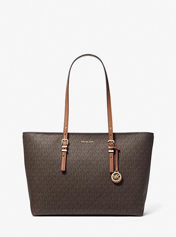 Quinn Large Signature Logo And Leather Tote Bag - Brown - Michael Kors Totes