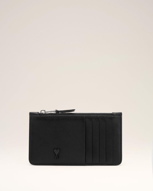Cowhide Leather Ami De Coeur Zipped Card Holder - Black - AMI Wallets