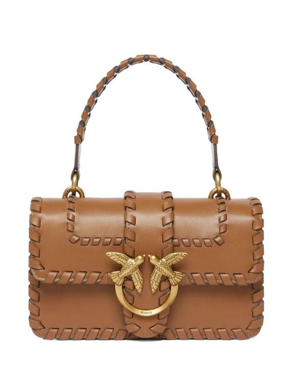 Braided-Leather Crossbody Bag - Brown - Pinko Shoulder Bags