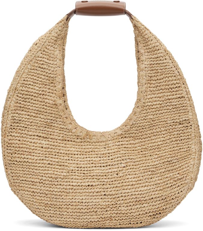 Tan Large Raffia Moon Tote - Metallic - Staud Beach Bags