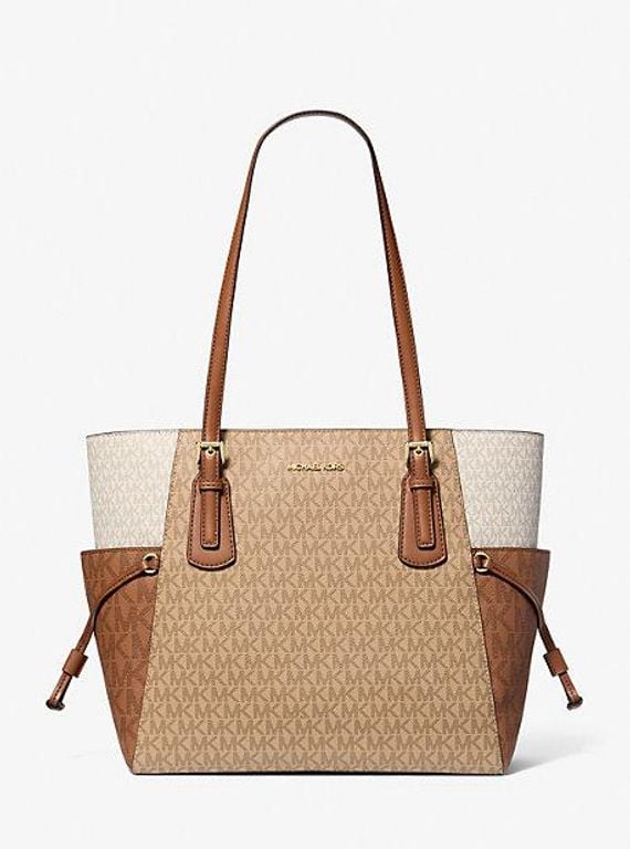 Voyager Large Color-Block Signature Logo Tote Bag - Natural - Michael Kors Totes